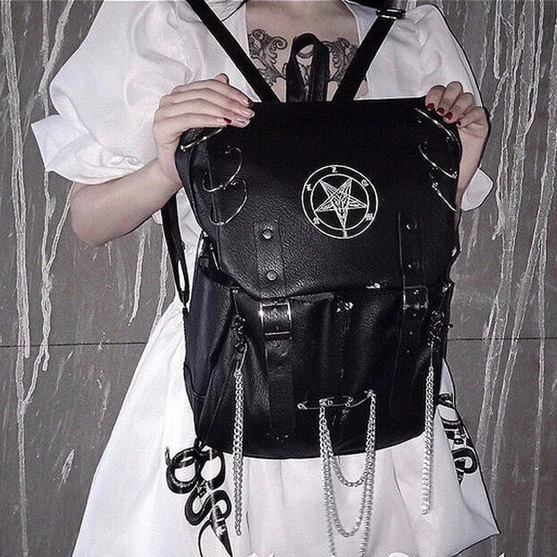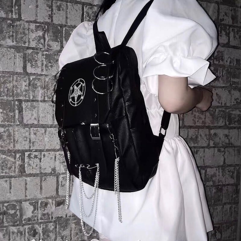 五芒星にチェーンストラップが病み可愛いバックパックです。ゴスロリアクセサリーとしておすすめです。