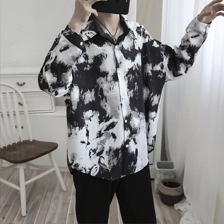 インクが染みたようなグラデーションの長袖シャツです。ルーズカジュアルなユニセックスだからカップルで着まわしたり、プレゼントにもおすすめです。Tシャツやゴスロリアクセサリーとコーデしてルーズカジュアルやストリート系、v系の着こなしも。