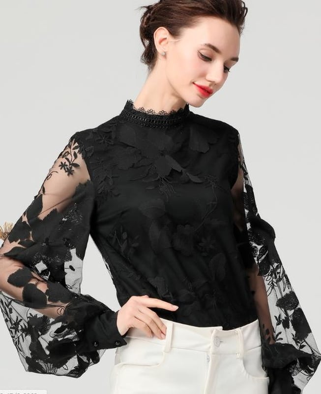 花柄刺繍にシフォンレースがセクシー、上品でゴージャスなシルエットの主役級のブラウスです。