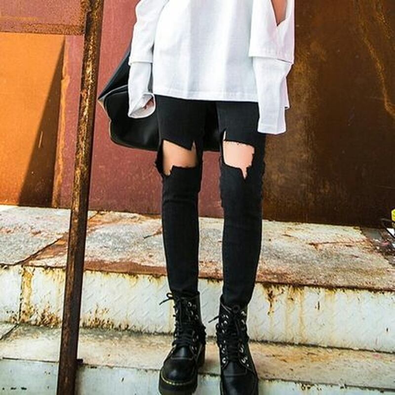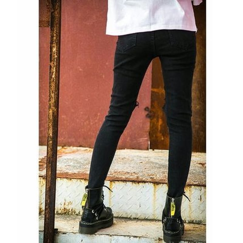 サブカル 服 地雷系 通販 スリムデニム クラッシュデニム ダメージ スキニー ジーンズ ブラック ゴシック