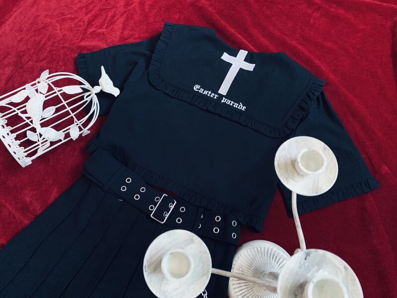大きな十字架の刺繍がインパクト抜群な病み可愛いトップス。国内には無いオリジナルデザインのゴスロリ専門メーカーだからゴシックな病み可愛いおしゃれが叶います。