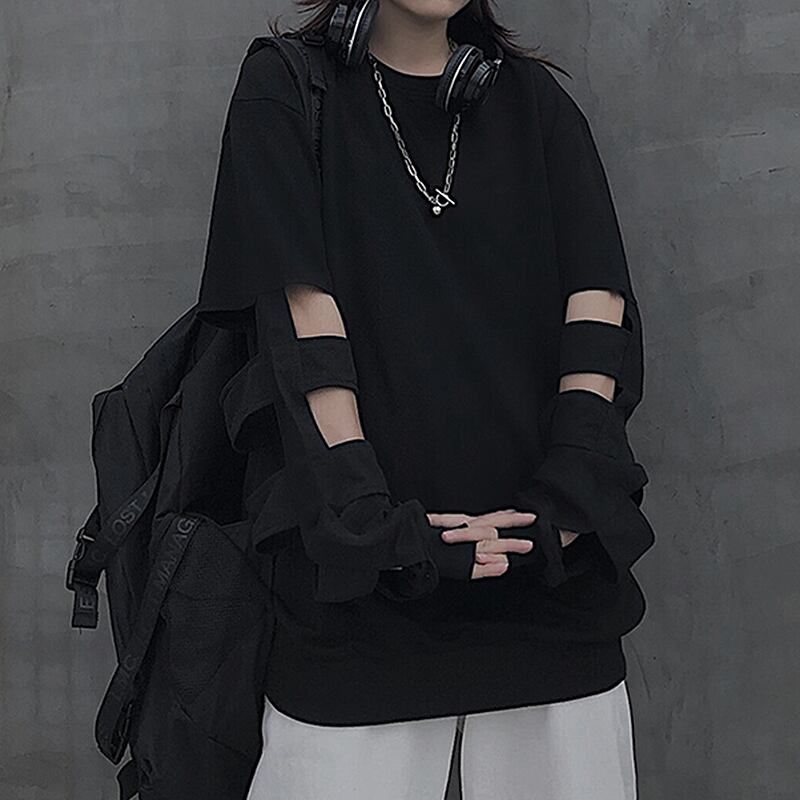サブカル 服 地雷系 通販 Tシャツ 異形デザイン 袖カッティング ダーク ユニセックス 闇かわいい
