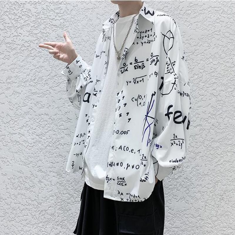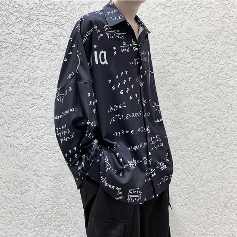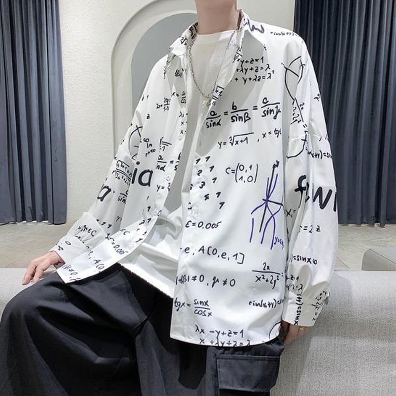 サブカル 服 地雷系 通販 メンズ モード系 トップス 長袖 シャツ 数式プリント 総柄 カジュアル 黒 白