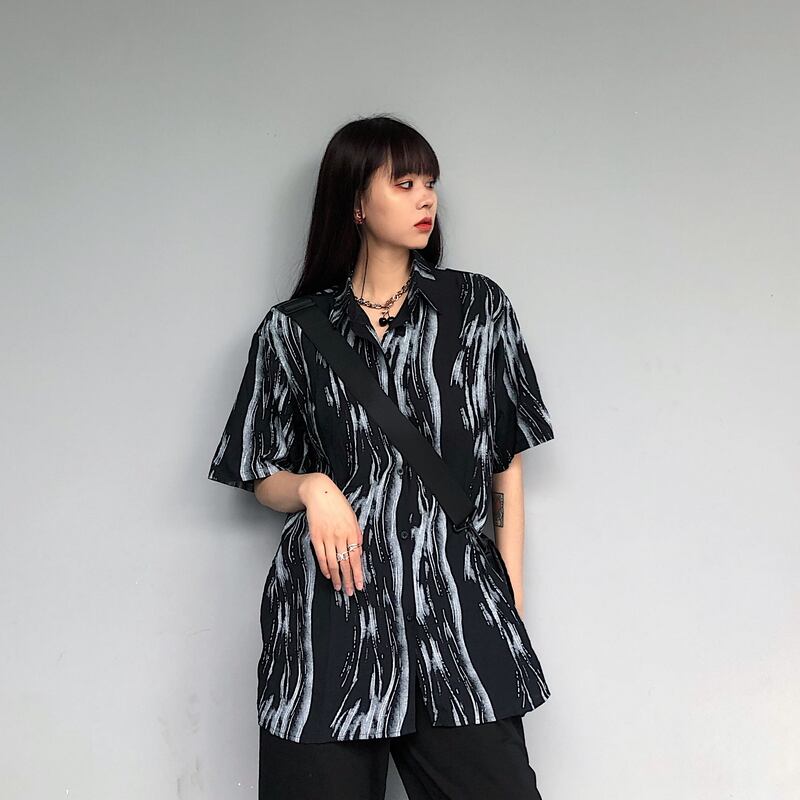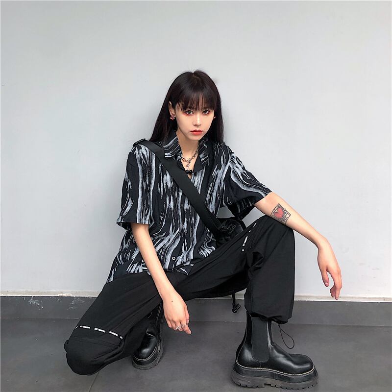 サブカル 服 地雷系 通販 ゴスロリ系 半袖 シャツ スプレーパターン柄 ユニセックス 闇かわいい ゴシック ロリータ