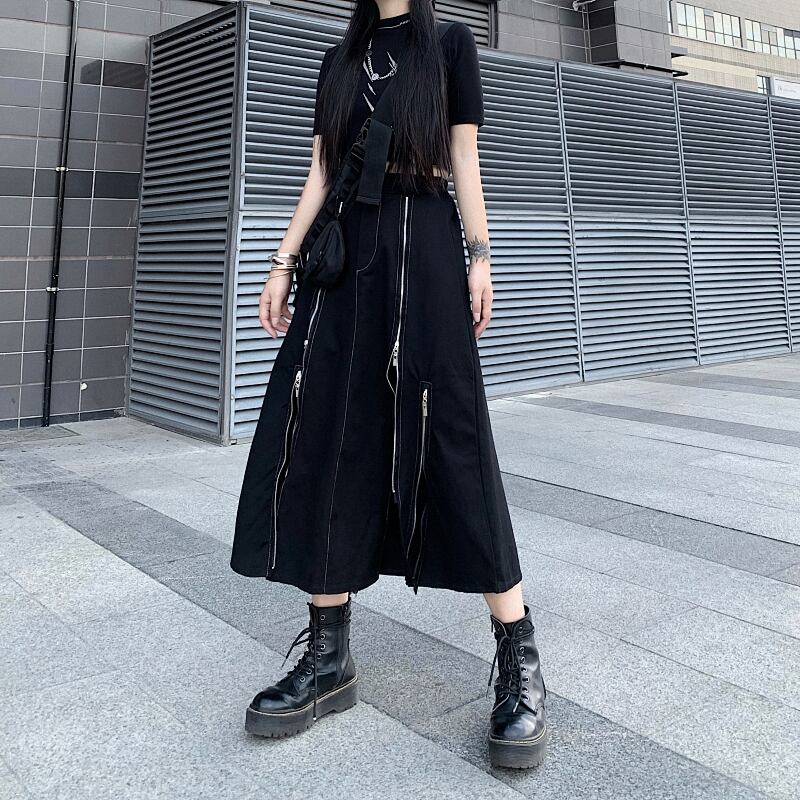 サブカル 服 地雷系 通販 スカート ロング丈 ミモレ丈 ZIPアップ Aライン 闇かわいい ブラック V系 パンク系