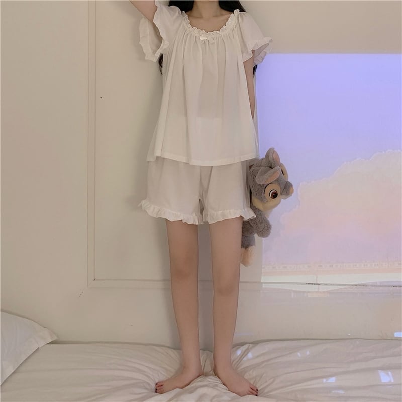 ガーリーなディテールにゆったりしたサイズ感のパジャマです。