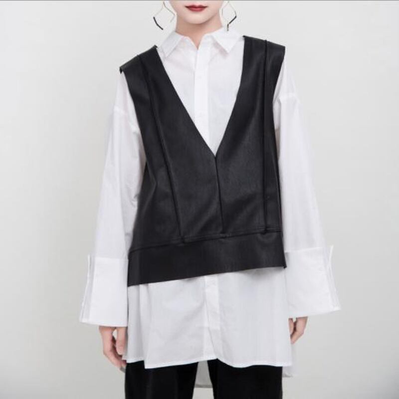 サブカル 服 地雷系 通販 レディース モード系 ベスト PUレザー ブラック 深Vネック プルオーバー 大人きれいめ ゴシック ゴシック ロリータ