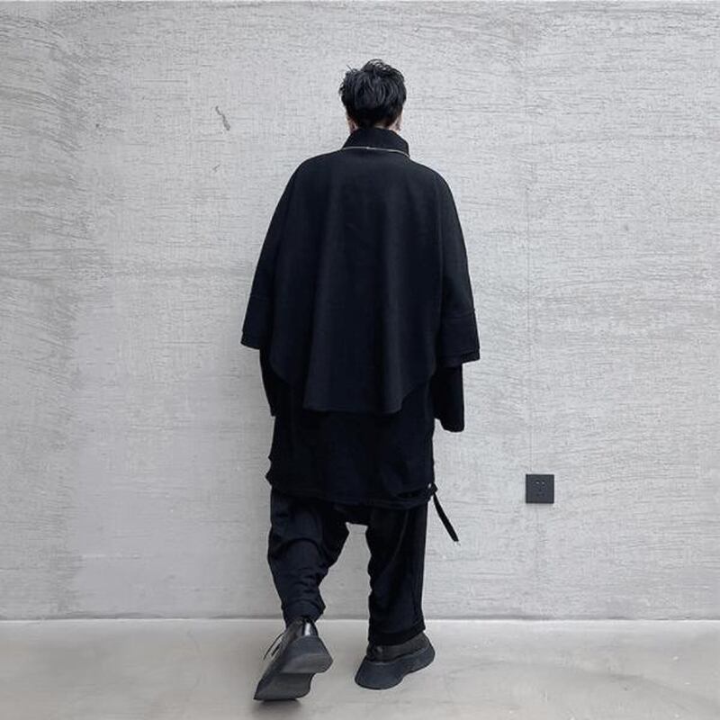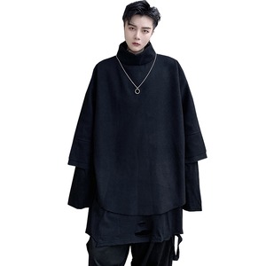 サブカル 服 地雷系 通販 メンズ モード系 タートルネック ハイネック 7分袖 セーター 黒コーデ 個性的 ビッグシルエット ゆったり ゴシック ロリータ