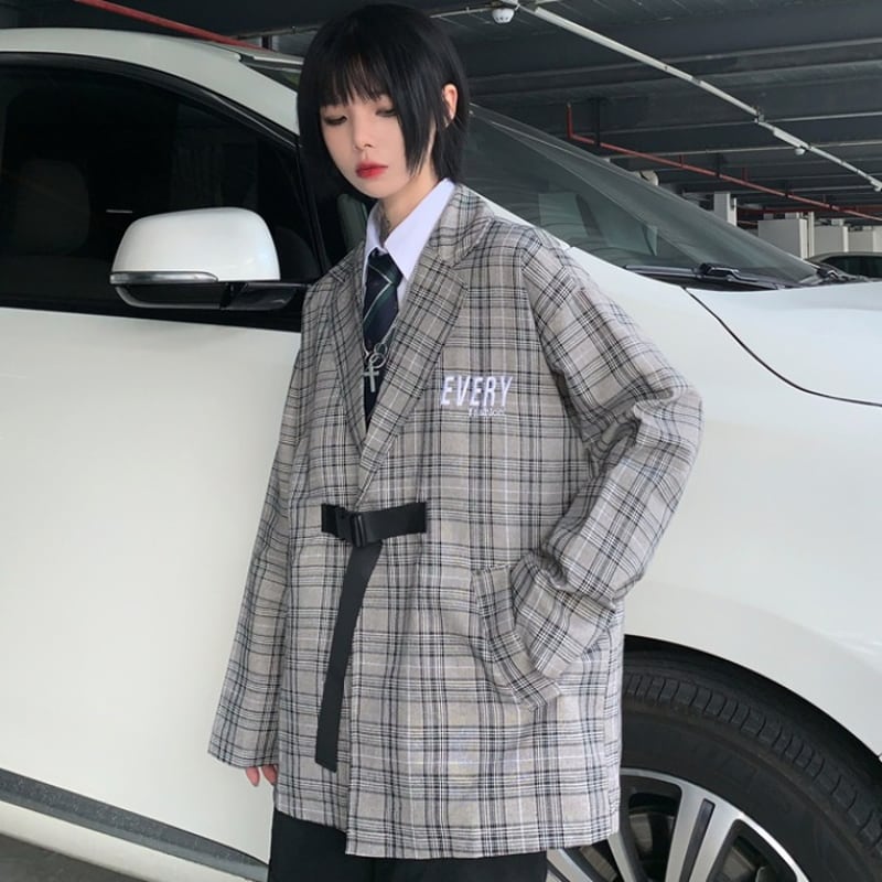 サブカル 服 地雷系 通販 ジャケット チェック柄 レトロ ロゴ刺繍 闇かわいい ゴシック ロリータ