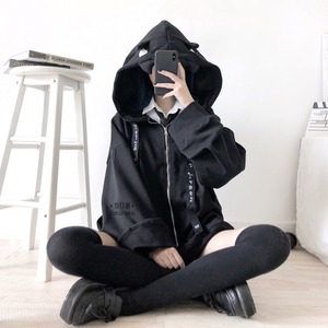 小悪魔の猫モチーフのJKスタイル黒パーカーです。