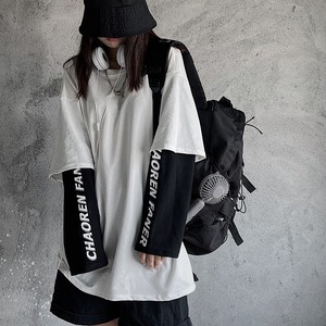 シンプル無地の半袖Tシャツをレイヤしたようなフェイク長袖Tシャツ。シンプルなTシャツだからストリート系以外にもカジュアルなトップスとしても着用頂けます。