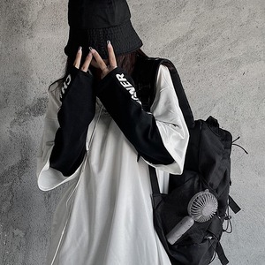 即納 現品限り サブカル系 フェイクツーピース 長袖Tシャツ Y2K ストリート系ファッション