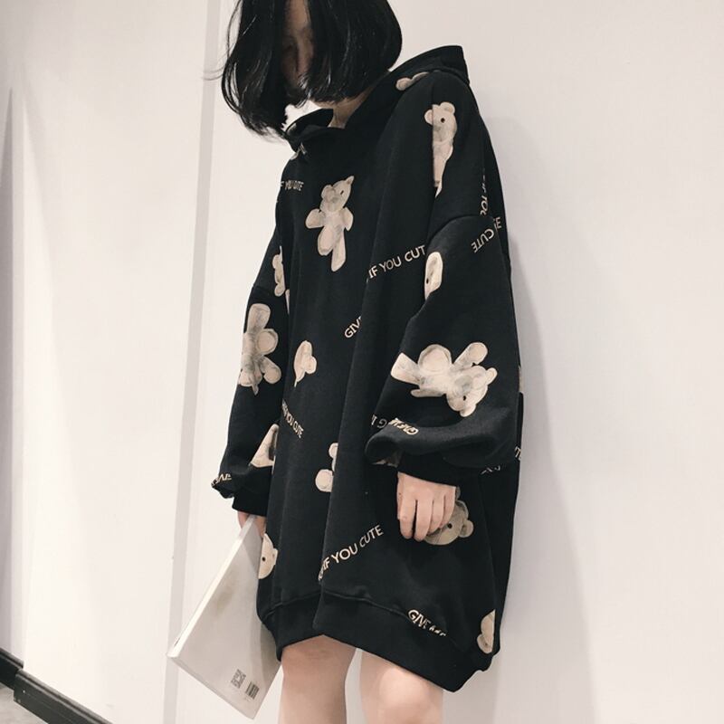 ゆったり大きめビッグシルエットに病みかわいいクマちゃん柄のデザインが病みかわいいパーカーです。ボリューミーなトップスだからボトムスはヘルシーなミニスカやスキニーとコーデすれば、おしゃれなオルチャンスタイルが叶います。