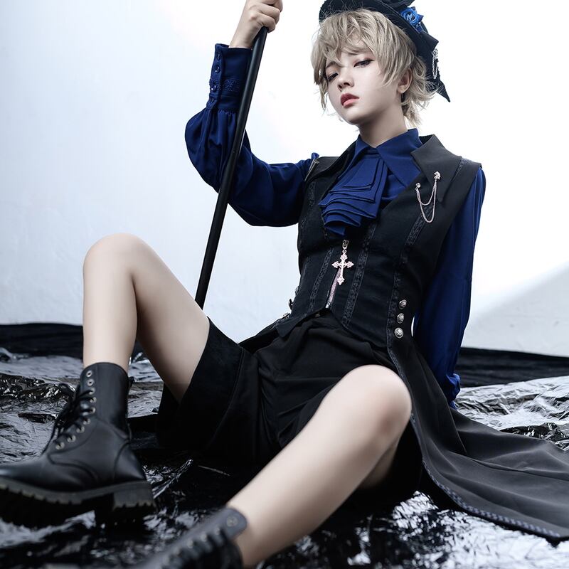 サブカル 服 地雷系 通販 王子 皇子系 ロリータ Princess Chronicles ロングベスト レトロ ゴシック 十字架 メタルチェーン ハイウエスト 闇かわいい 上品 エレガント コスプレ 衣装 イベント衣装