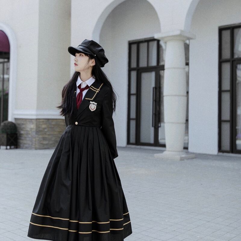 サブカル 服 地雷系 通販 ロリータ ワンピース 制服 フルセット シャツ ネクタイ ハイウエスト ロング丈 プリーツスカート 女学院風 ゴシック ロリータ