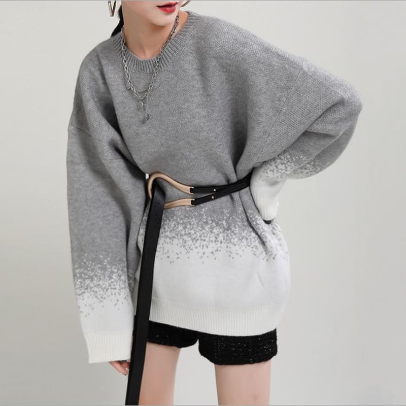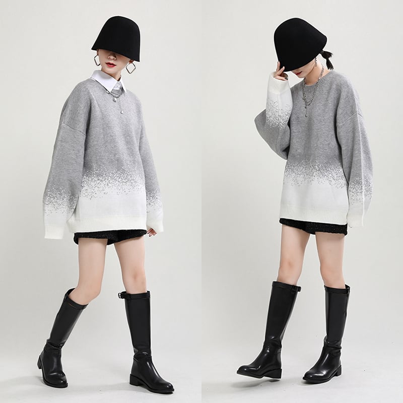 サブカル 服 地雷系 通販 モード系 秋冬 ニット グラデーション ラウンドネック ゆったり 大人きれいめ シック バイカラー ゴシック ロリータ