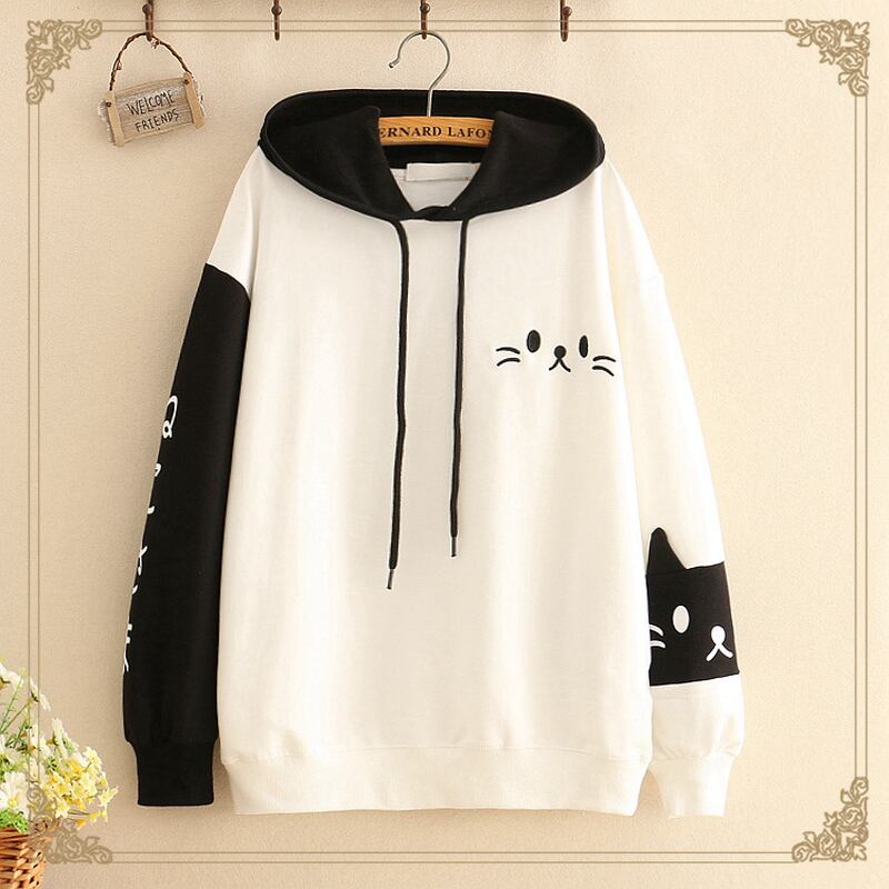 スリーブの黒猫刺繍がおしゃれなJKスタイルの甘めパーカーです。