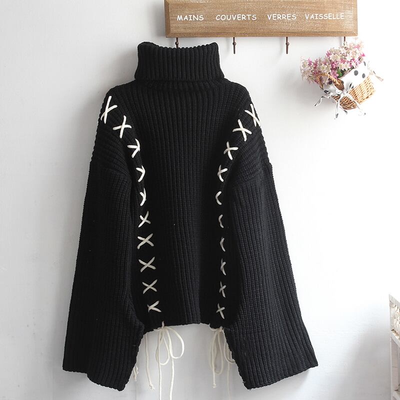 サブカル 服 地雷系 通販 モード系 ざっくり ニット セーター オーバーサイズ レースアップ 編み上げ 大人カジュアル 韓国ファッション ゴシック ロリータ