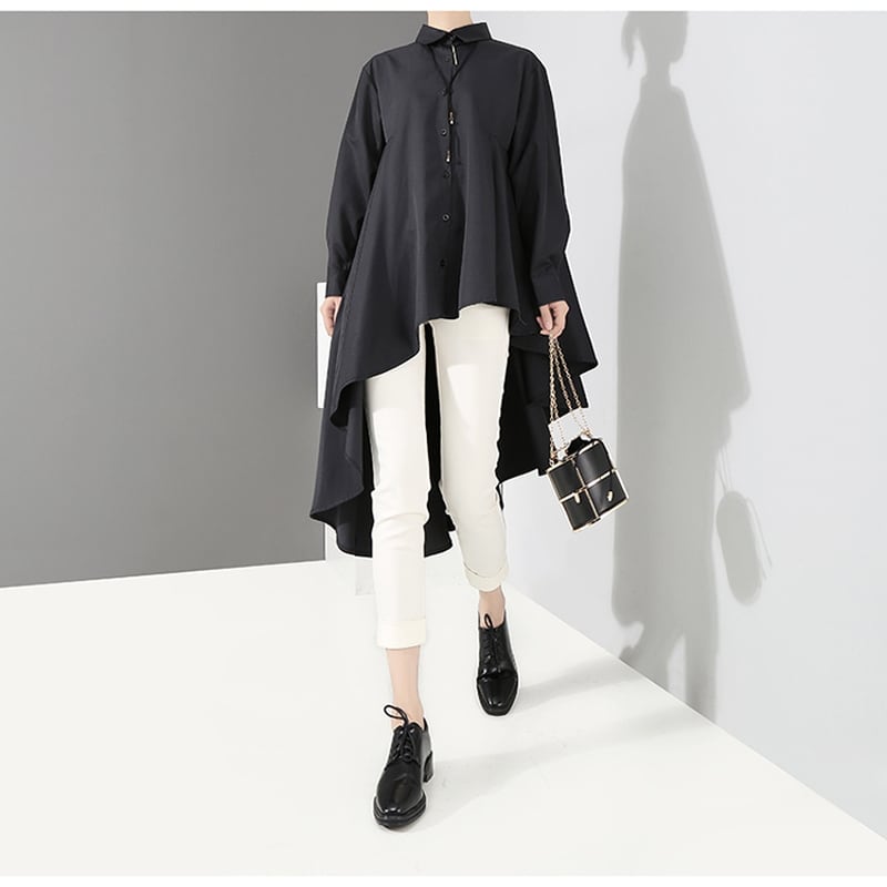 サブカル 服 地雷系 通販 モード系 シャツ シャツワンピ アシンメトリー フレアスカート ミモレ丈 大人きれいめ 韓国ファッション ゴシック ロリータ