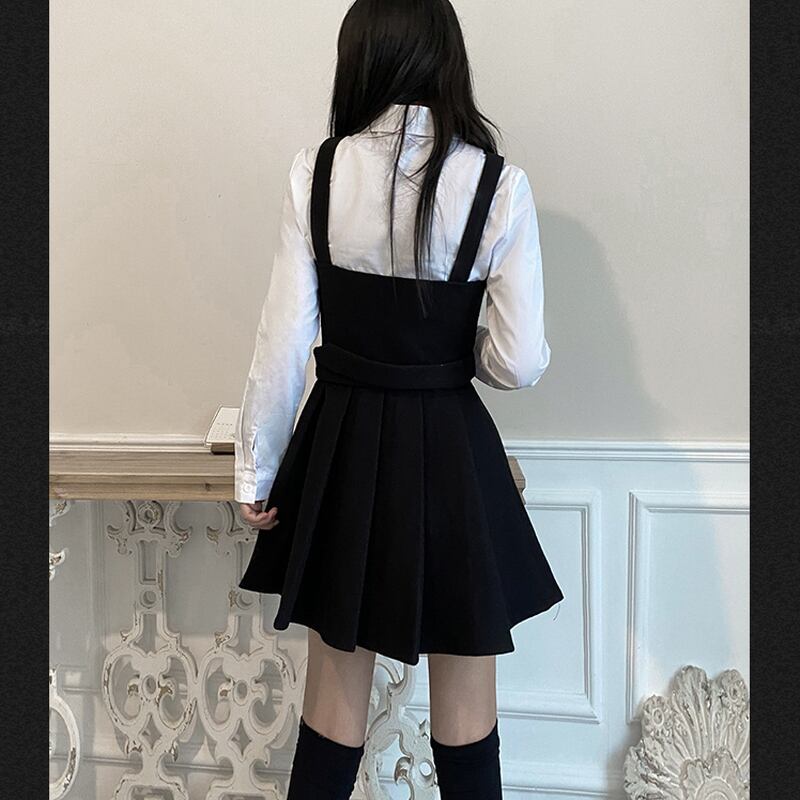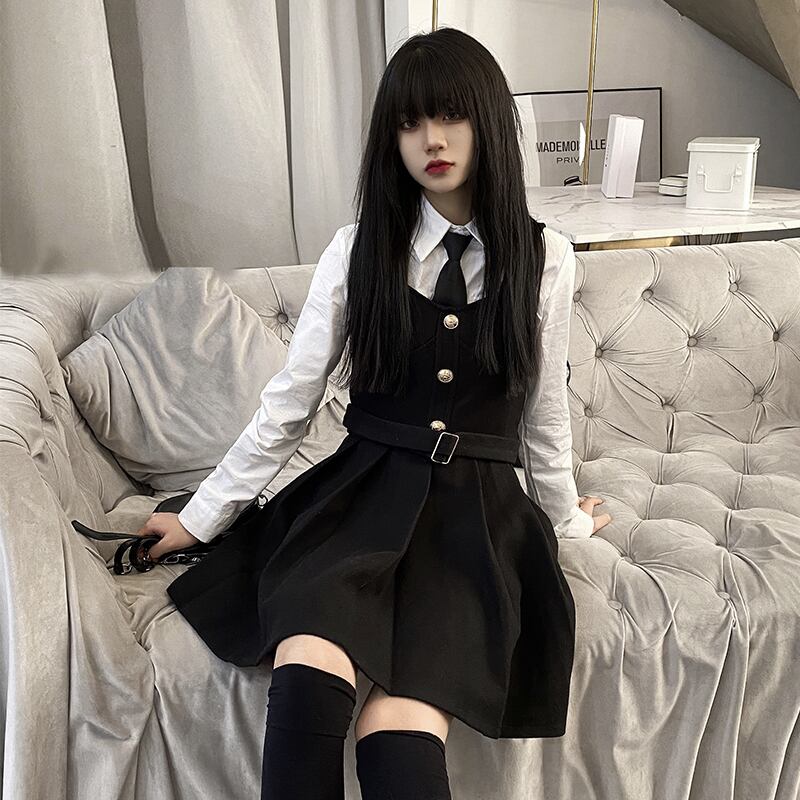 サブカル 服 地雷系 通販 ゴスロリ系 闇かわいい オールインワン 上下セット ジャケット プリーツスカート ハイウエスト ミドル丈 学園風 ゴシック ロリータ