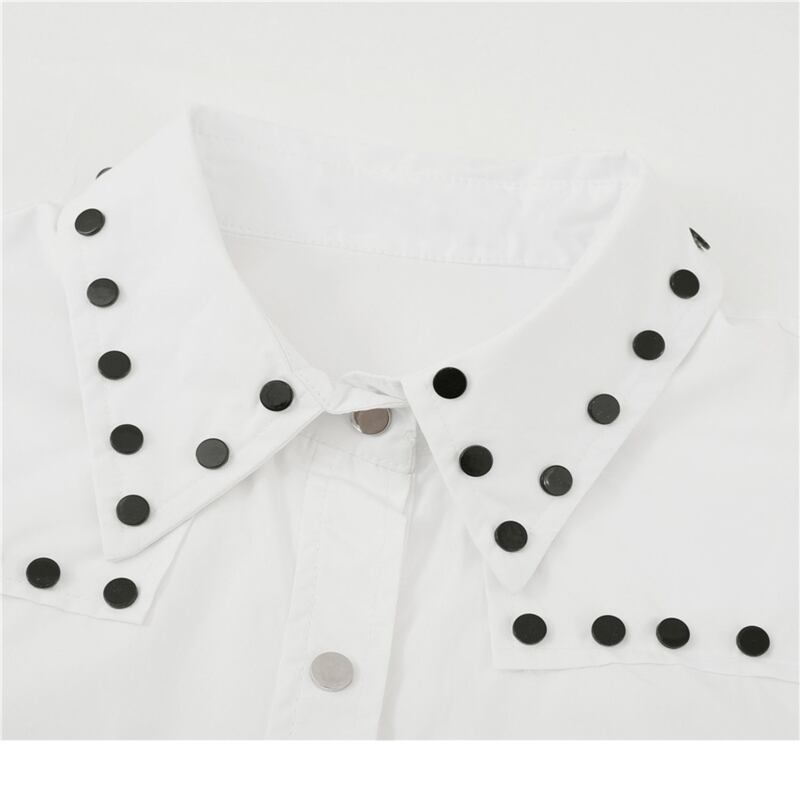 サブカル 服 地雷系 通販 モード系 春服 シャツ ブラウス 欧米系 ストリート系シャツ メタルボタン 大人きれいめ ホワイト おしゃれ着 ゴシック ロリータ
