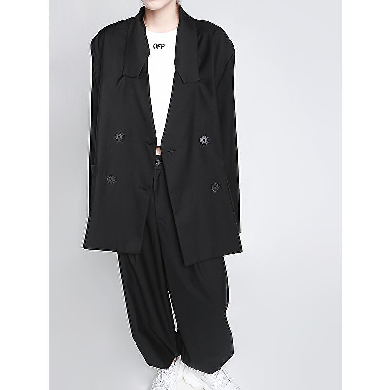 ゆったりしたジャケットにワイドなワタリ幅のモンペパンツ。