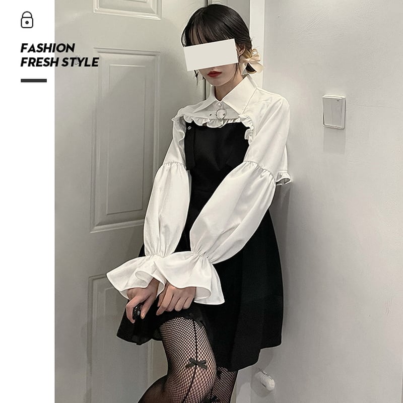 即納 サブカル系 ショートシャツ ボレロ 現品のみ ホワイト グレー