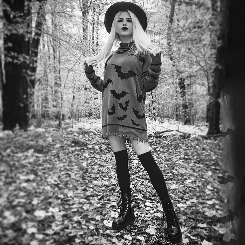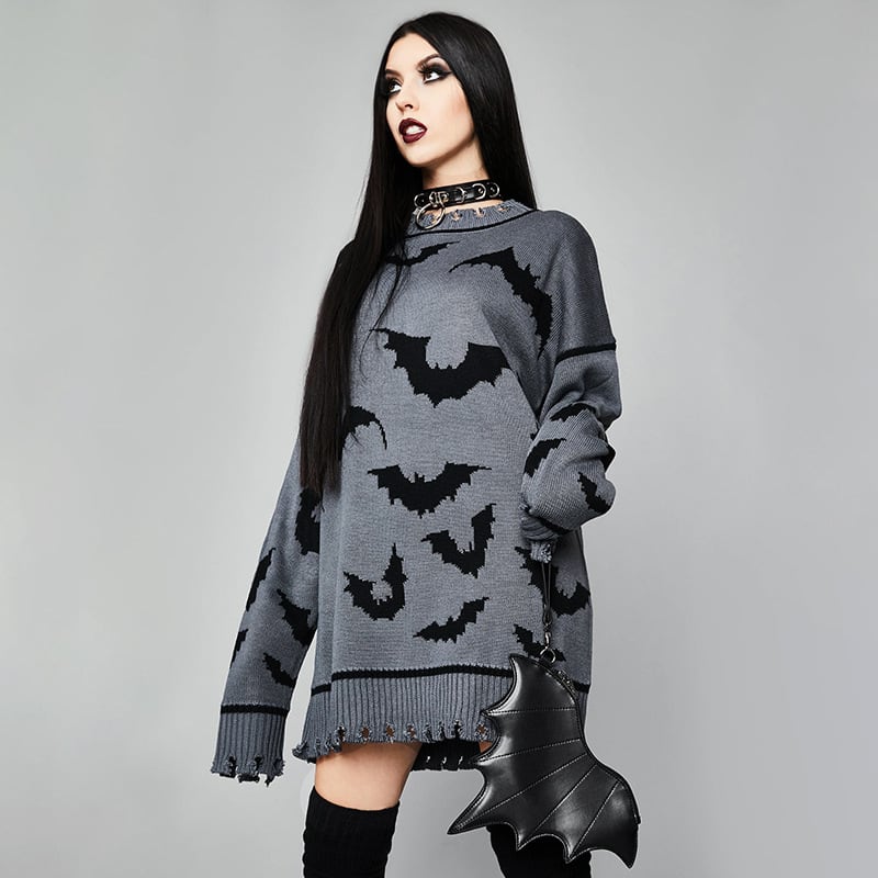 サブカル 服 地雷系 通販 ゴスロリ ゴシック系 春服 春 ニット セーター ロング丈 コウモリ 闇かわいい 黒ゴス ゴシック ロリータ