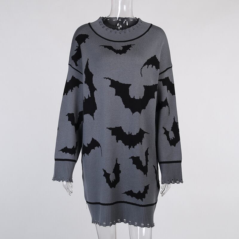 Darkな病み可愛いコウモリ柄のニットセーターです。