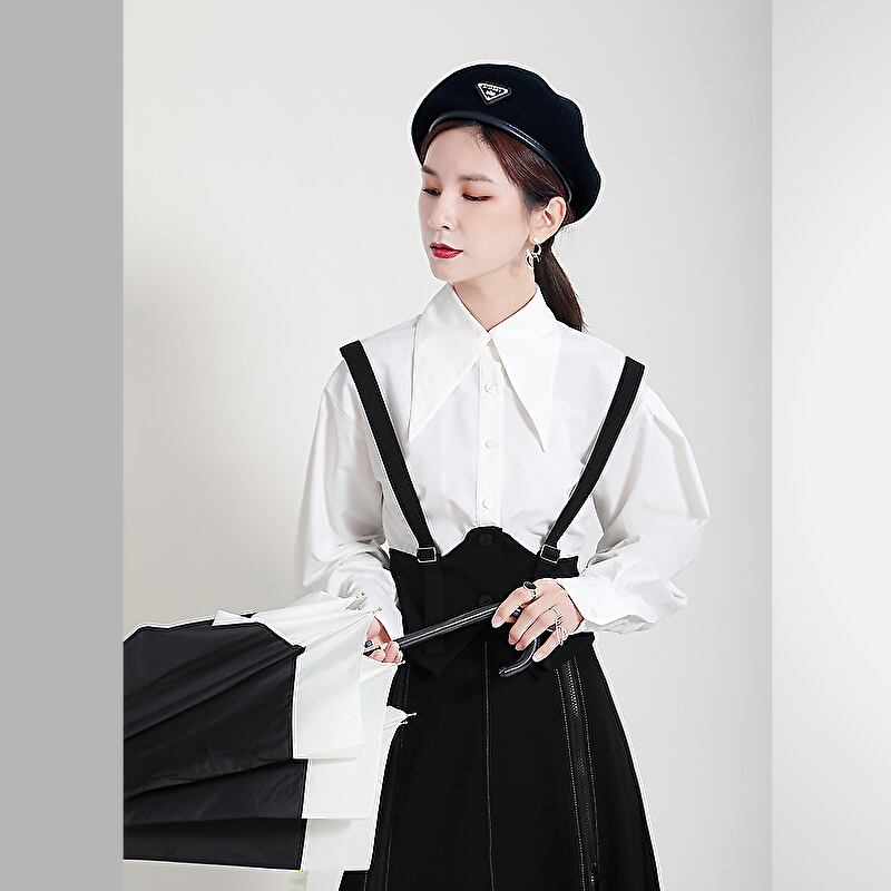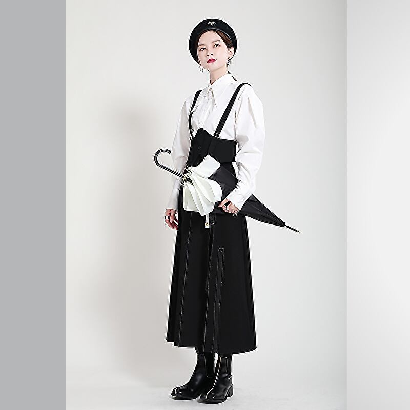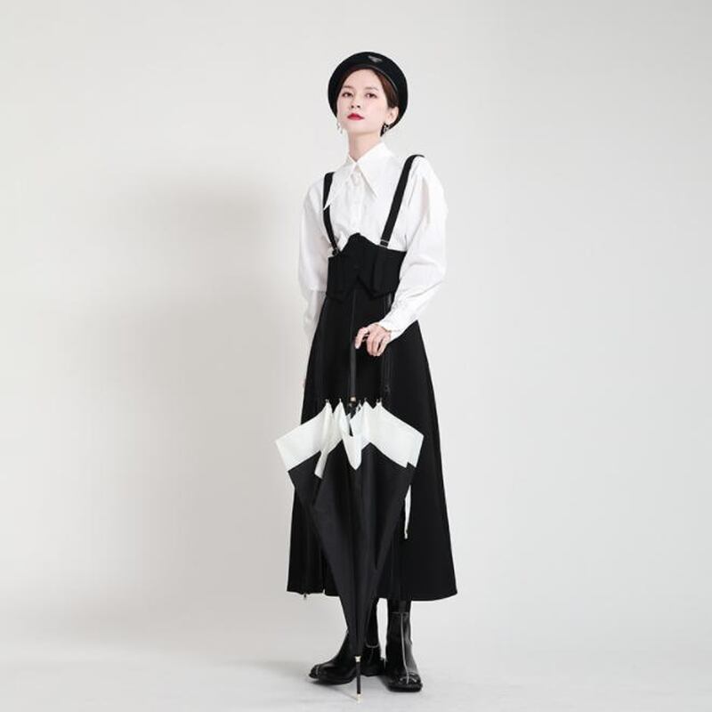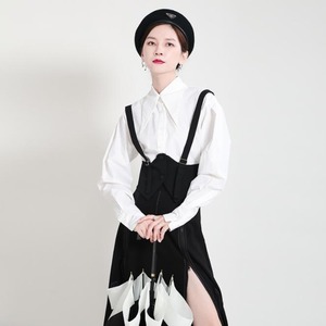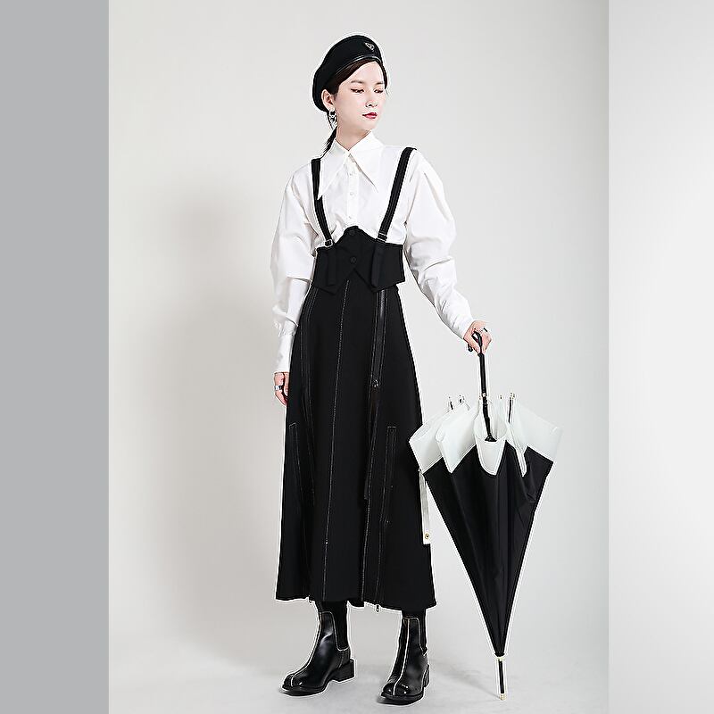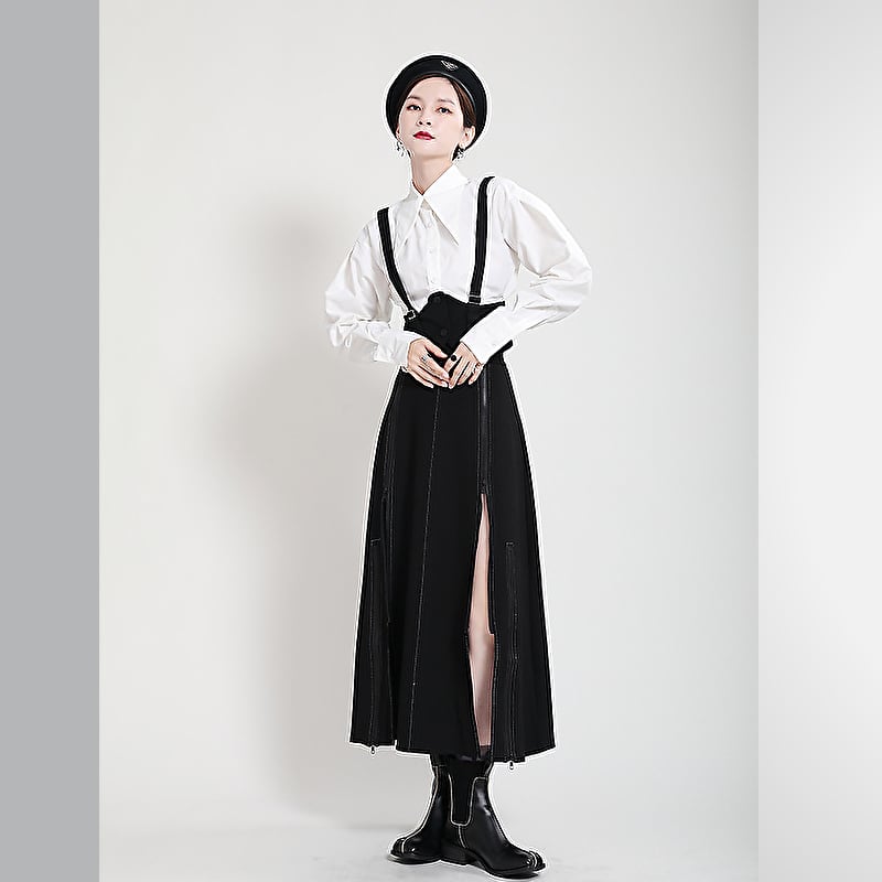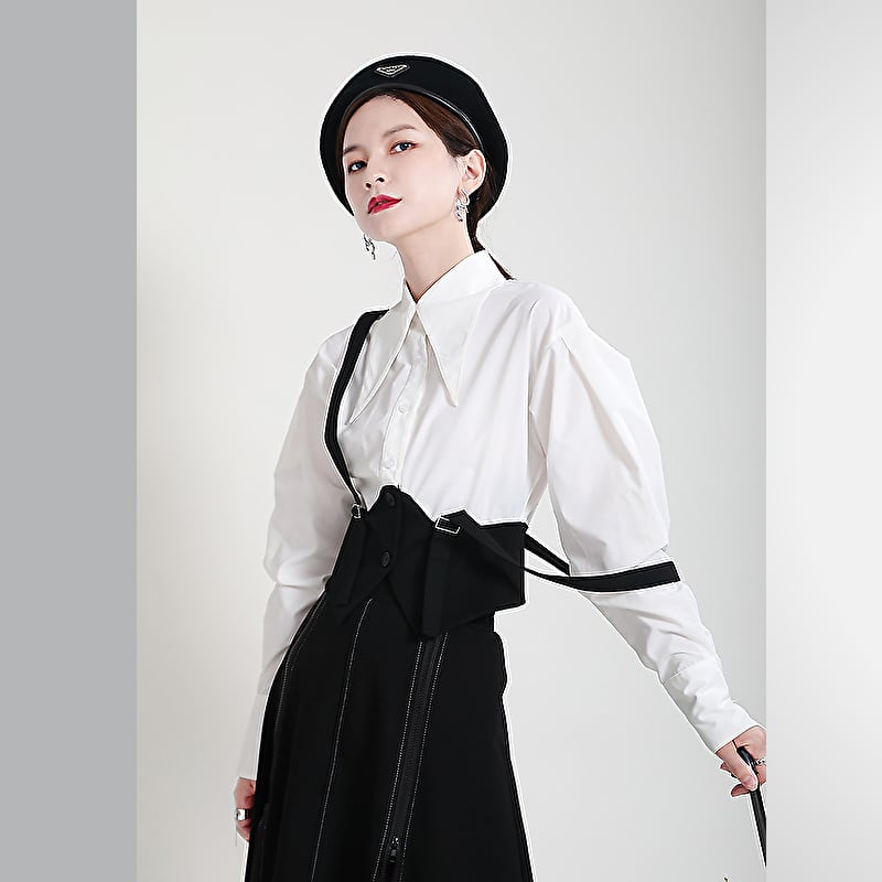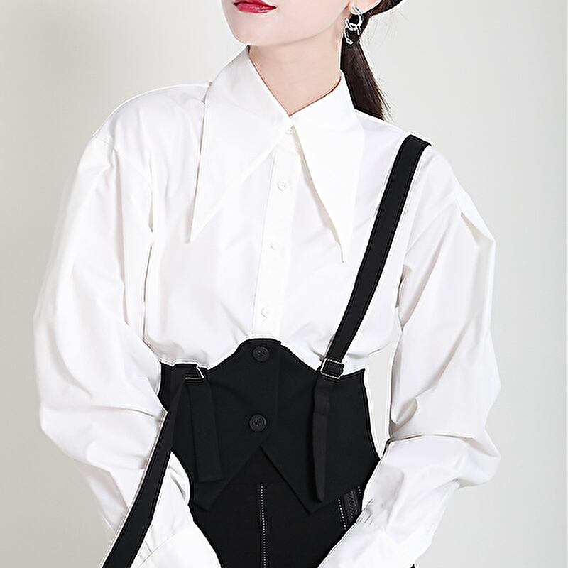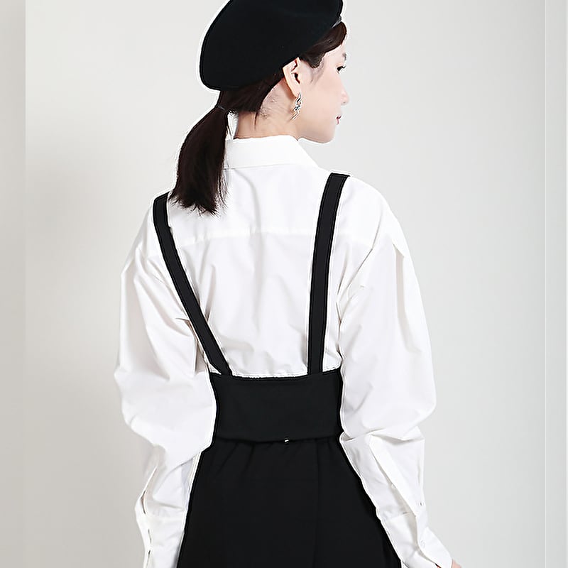 サブカル 服 地雷系 通販 モード系 春服 シャツ フェイク ツーピース サスペンダーベルト ゴシックコーデ 黒ゴス ゴシック ロリータ