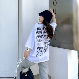ゆったりしたサイズ感だからデニム、ミニスカ、パンツでも合わせやすいシンプルな夏Tシャツです。