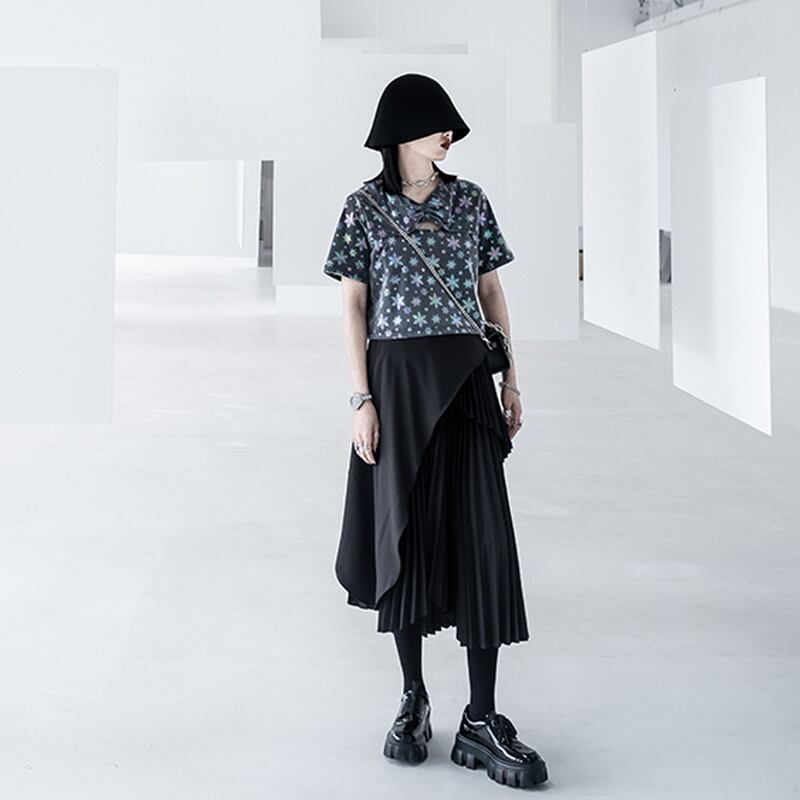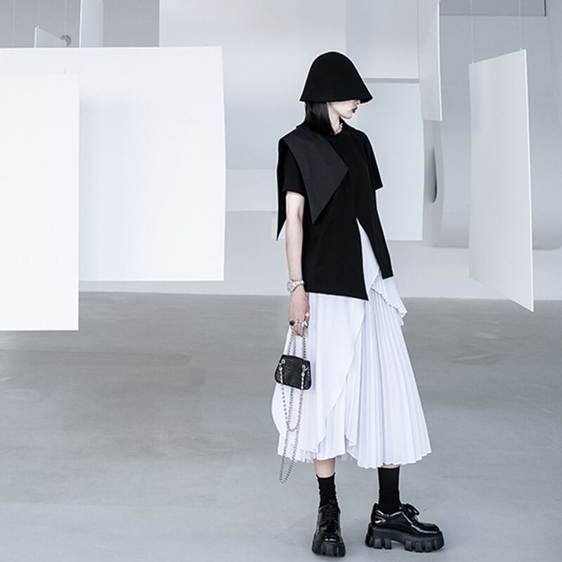 サブカル 服 地雷系 通販 モード系 春 夏服 プリーツ スカート アシンメトリー レイヤード ふんわり おとなキレイめ かわいい フェミニン おしゃれ ゴシック ロリータ