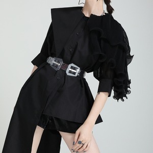 サブカル 服 地雷系 通販 モード服 ロングシャツ アシンメトリー プリーツ パフスリーブ 大人きれいめ 個性的 デザイン ゴシック ロリータ