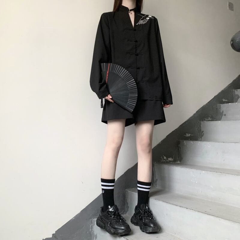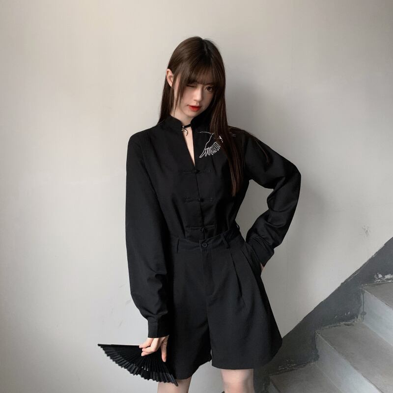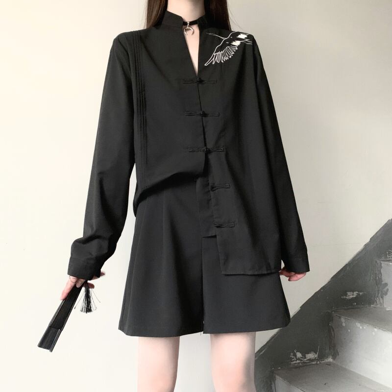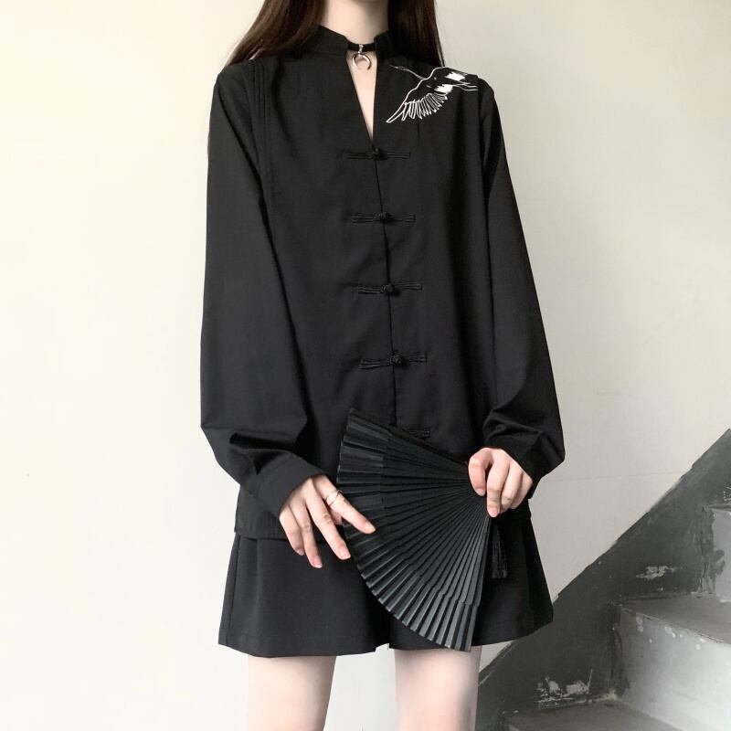サブカル 服 地雷系 通販 ブラウス ガーリー 闇かわいい 中華風 黒シャツ 甘め 白シャツ 可愛い ゴシック ロリータ
