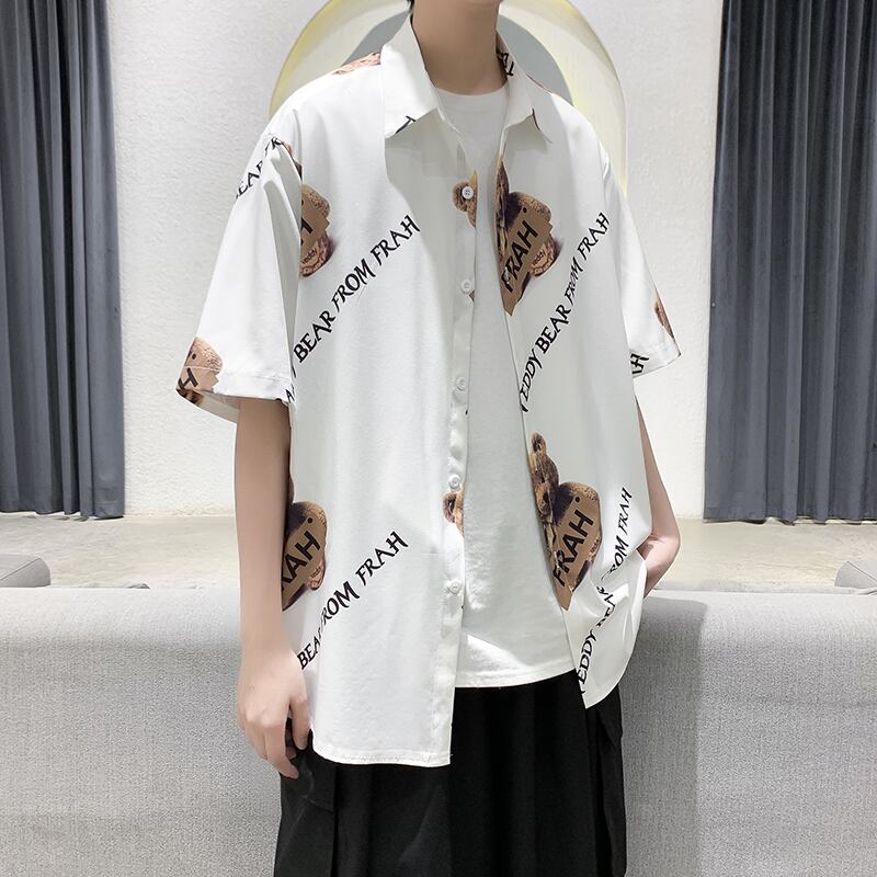 サブカル 服 地雷系 通販 メンズ シャツ 半袖 クマちゃん プリント柄 ビッグシルエット 大人 カジュアル 可愛い 闇かわいい ゴシック ロリータ