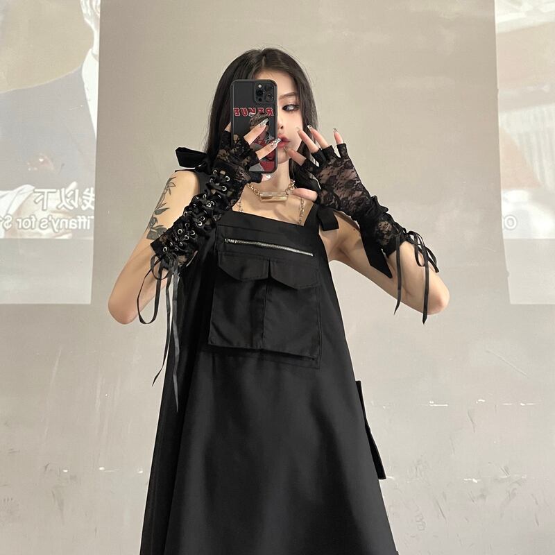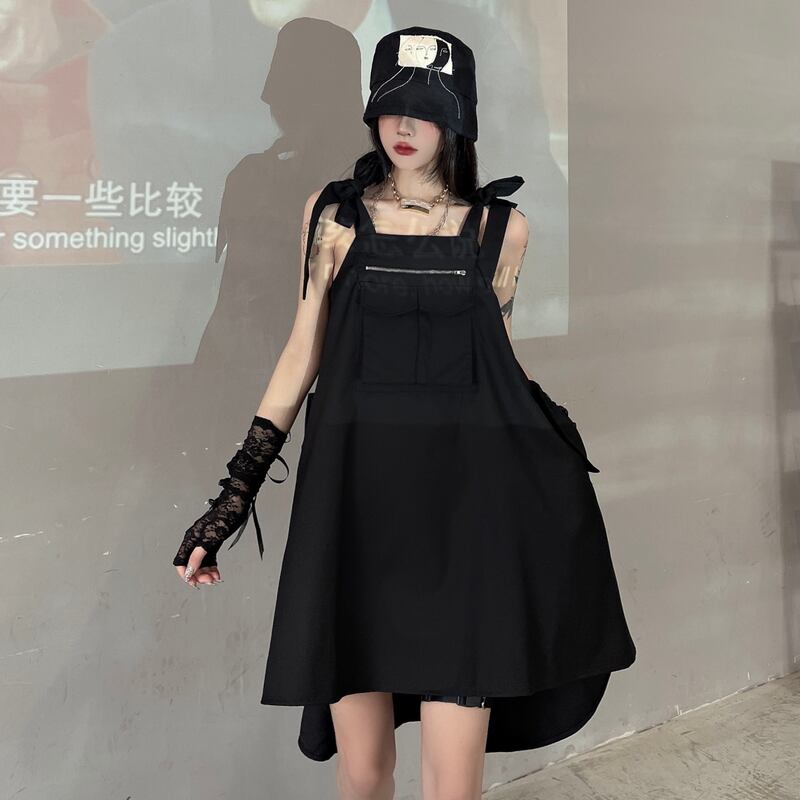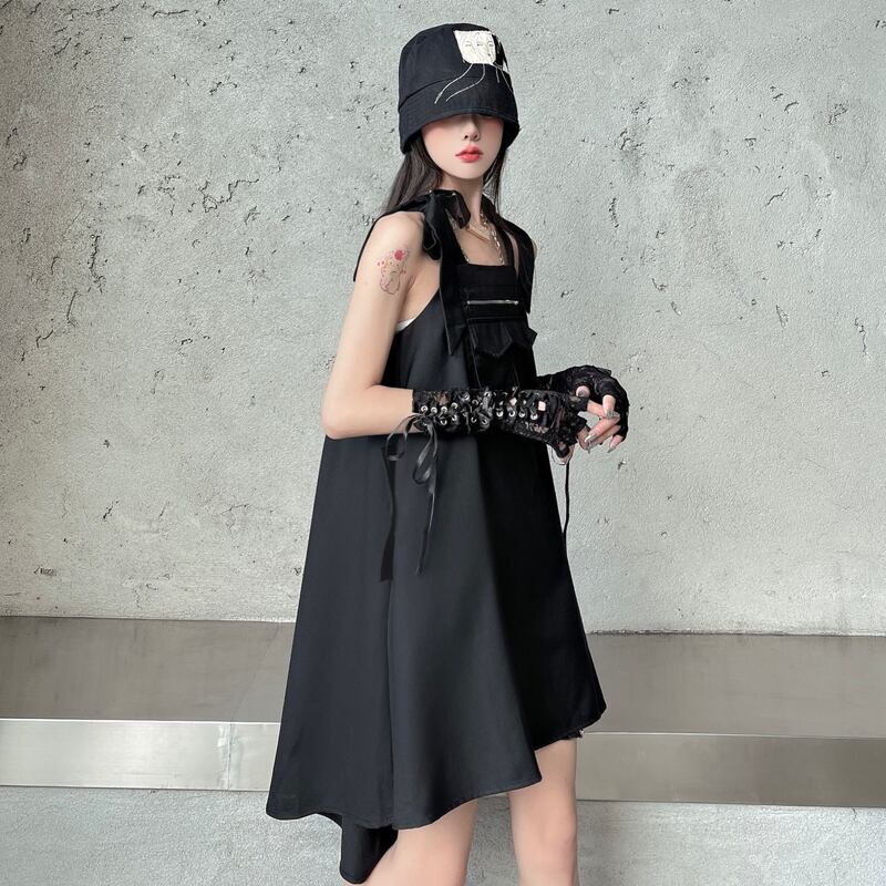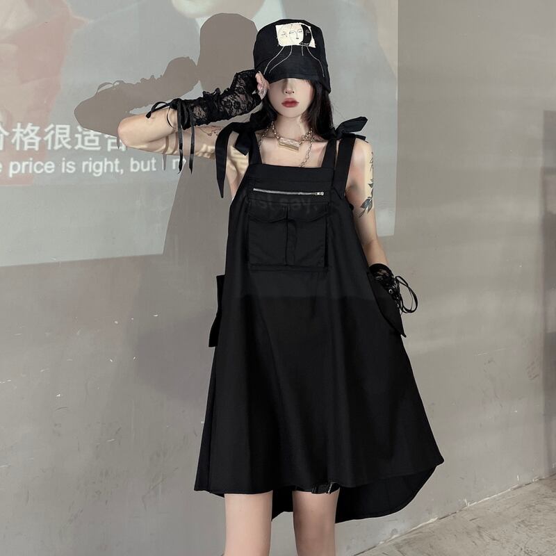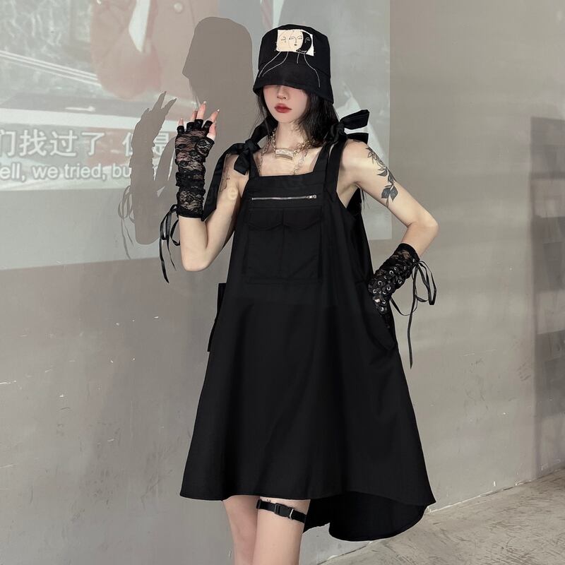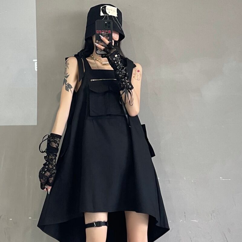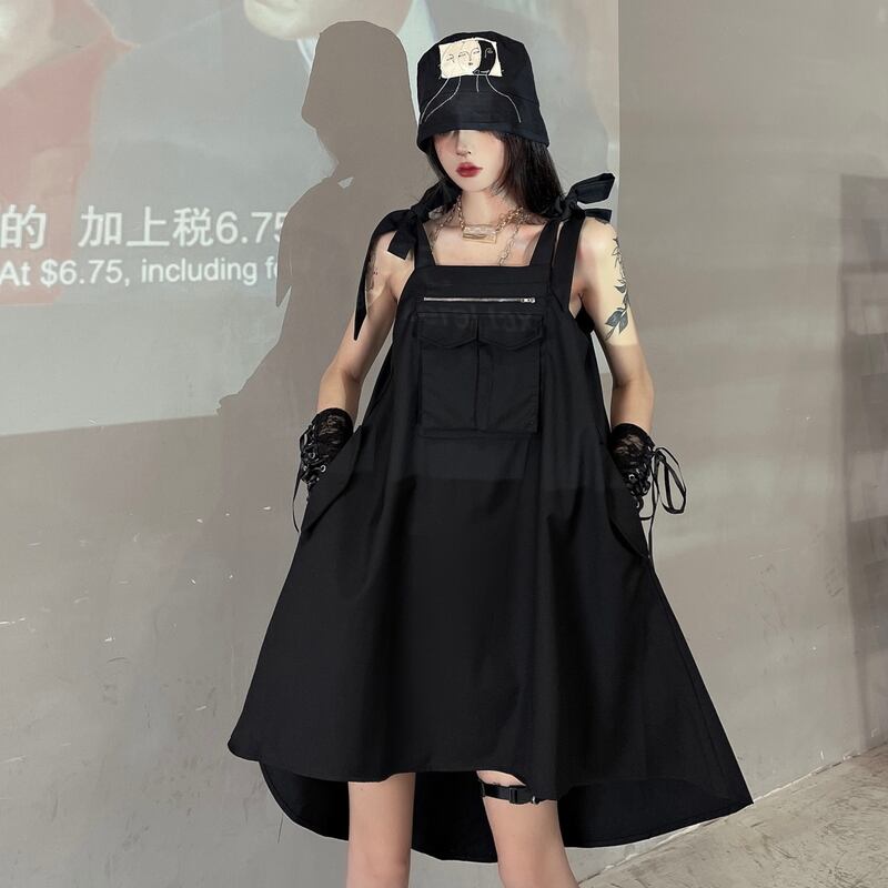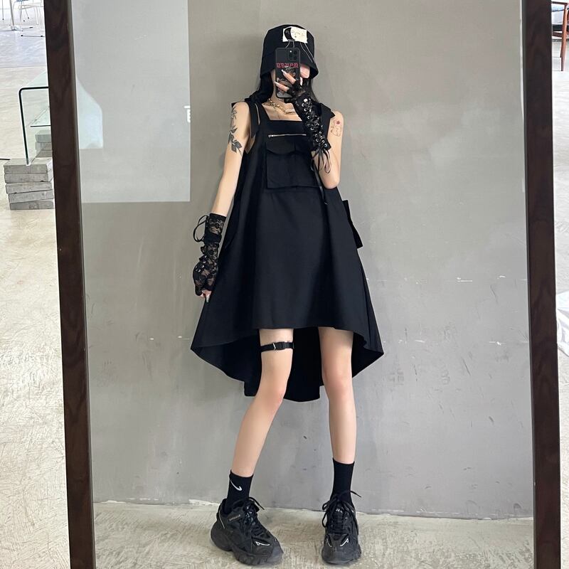サブカル 服 地雷系 通販 ゴスロリ ロング丈 ワンピ ノースリーブ JSK アシンメトリー 黒ゴス 闇かわいい ゴシック ロリータ
