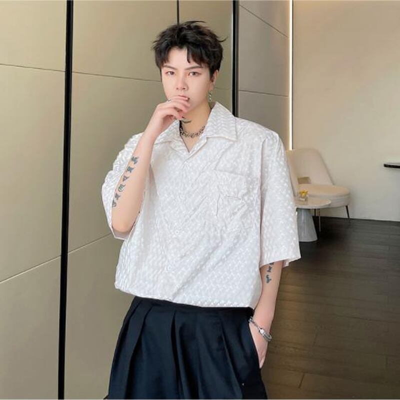 サブカル 服 地雷系 通販 メンズ 半袖シャツ ウェーブ模様 クール かっこいい ゴシック ロリータ