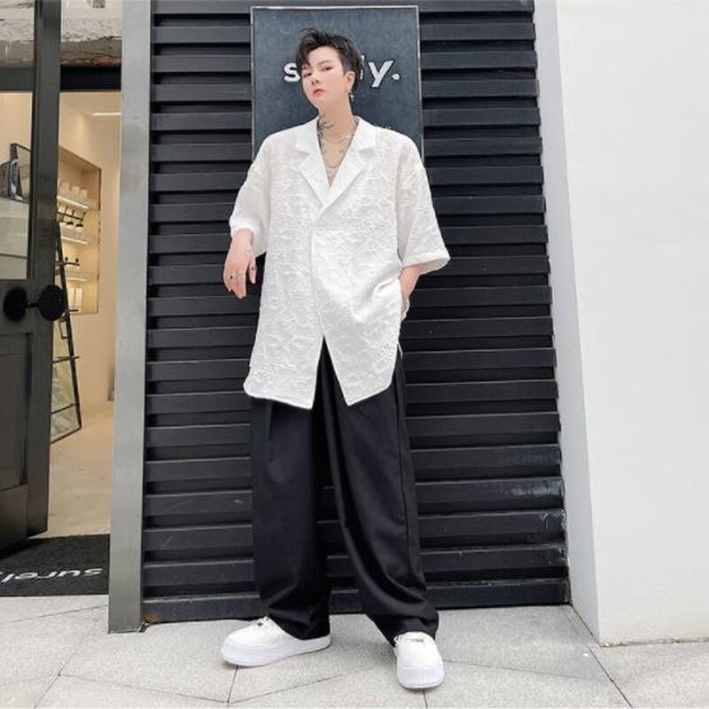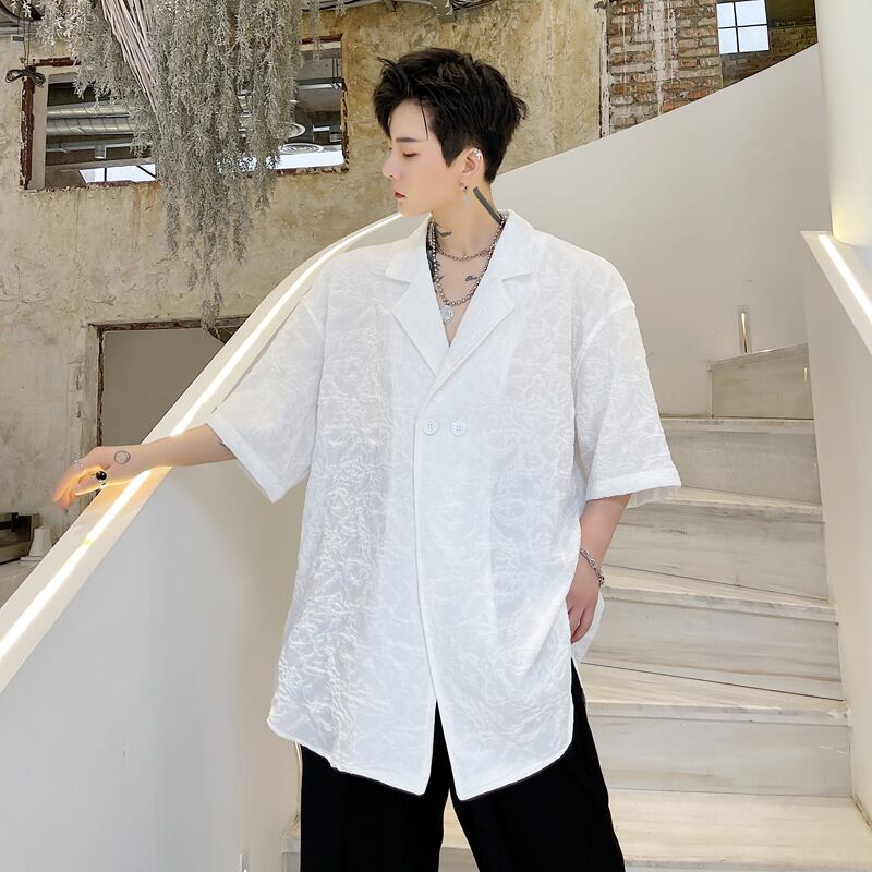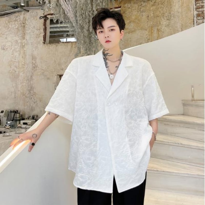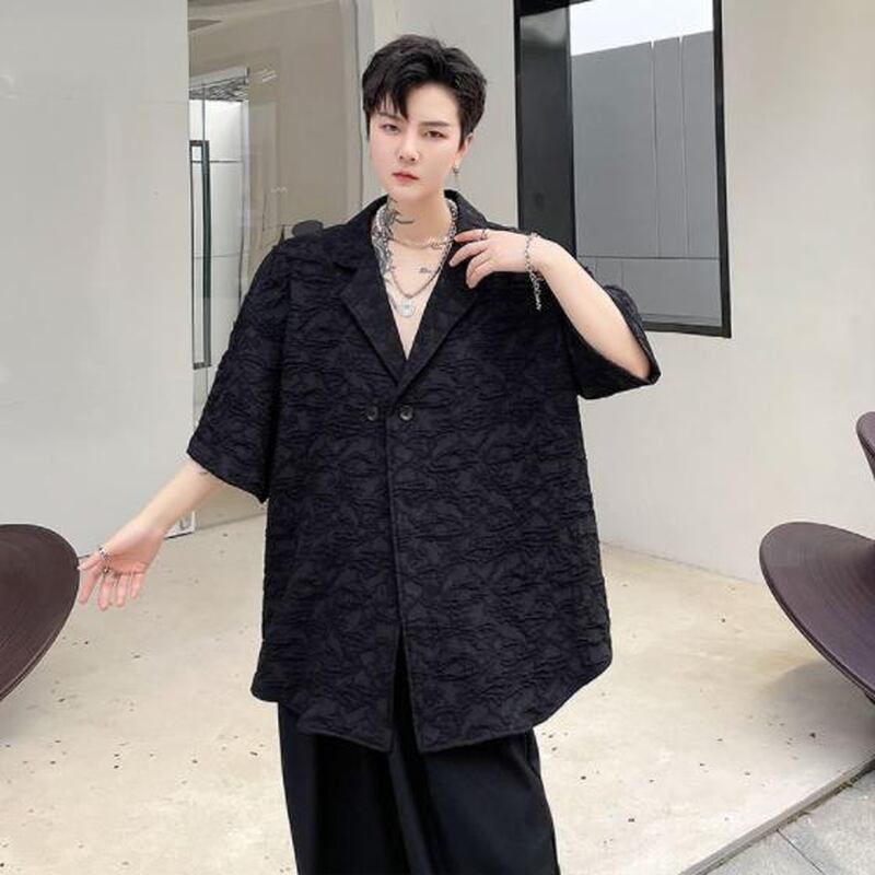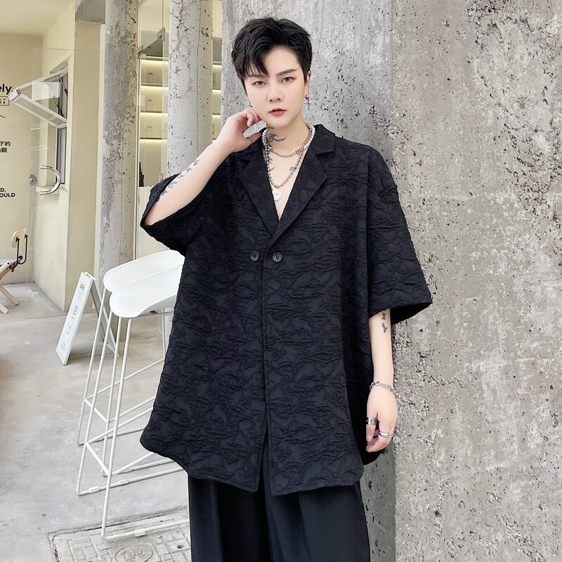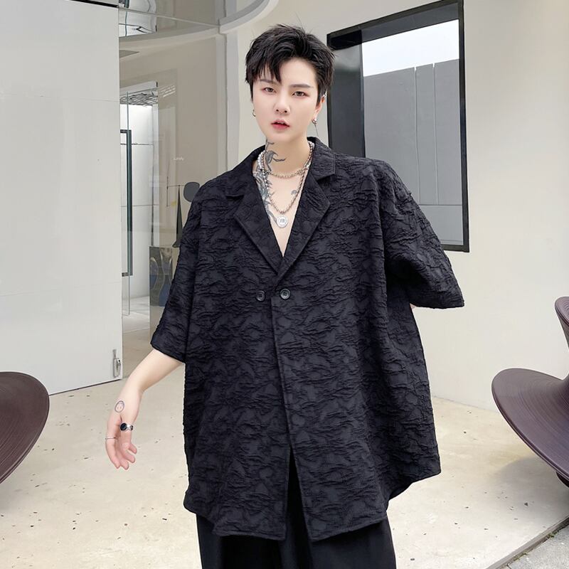 サブカル 服 地雷系 通販 メンズ ジャケット 半袖シャツ シアー 透け感 絞り加工 シボ加工 dark ブラック クール ホワイト かっこいい ゴシック ロリータ