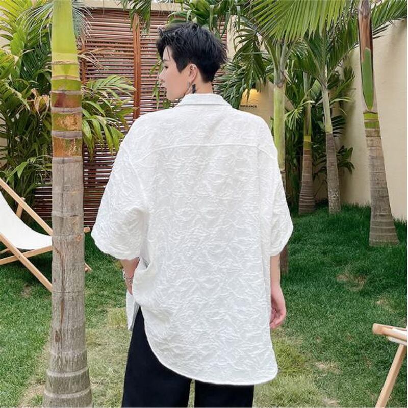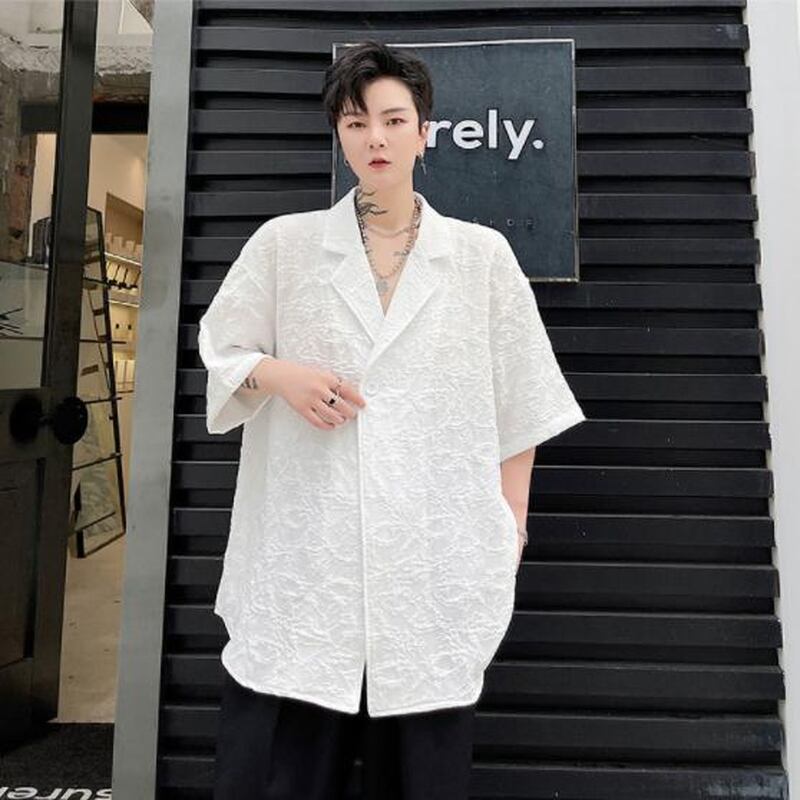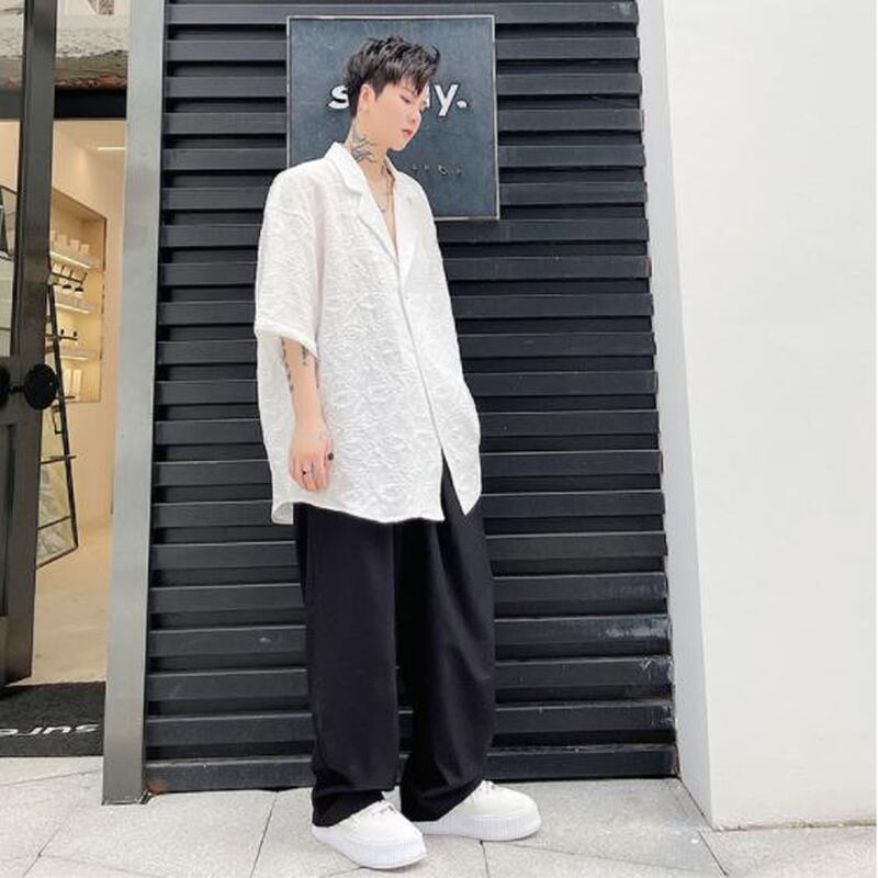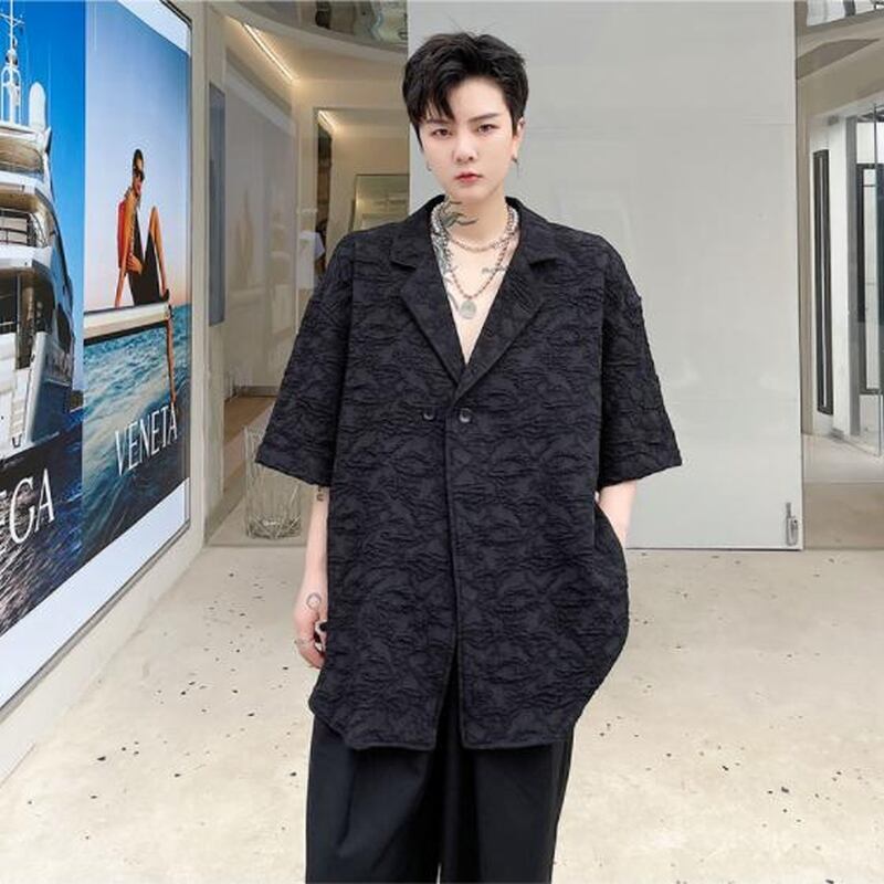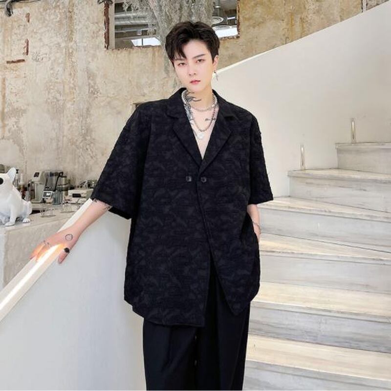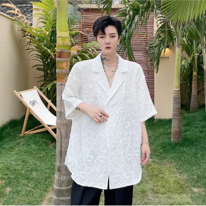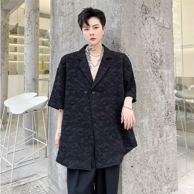 サブカル 服 地雷系 通販 メンズ ジャケット 半袖シャツ シアー 透け感 絞り加工 シボ加工 dark ブラック クール ホワイト かっこいい ゴシック ロリータ