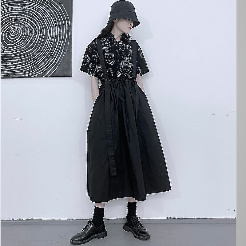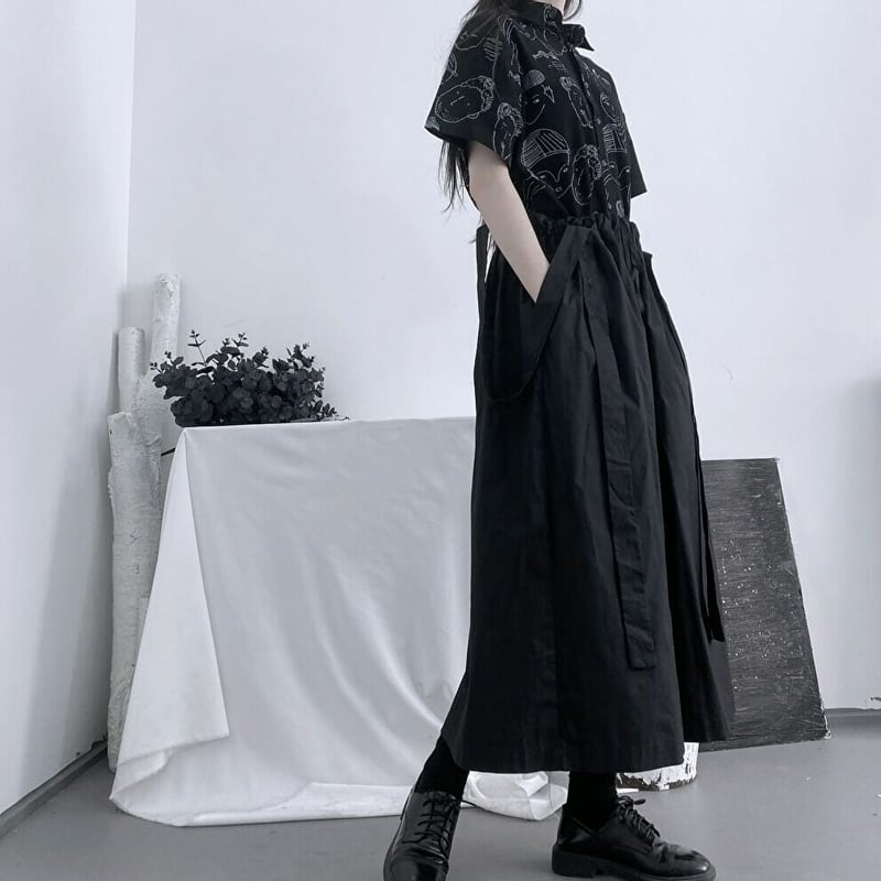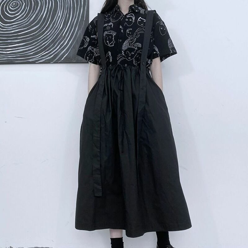 サブカル 服 地雷系 通販 ゴスロリ ツーピース 半袖シャツ サスペンダースカート ハイウエスト dark gothic 闇かわいい 黒ゴス ロング丈 ゴシック ロリータ