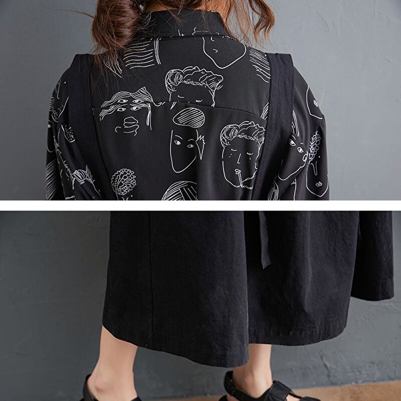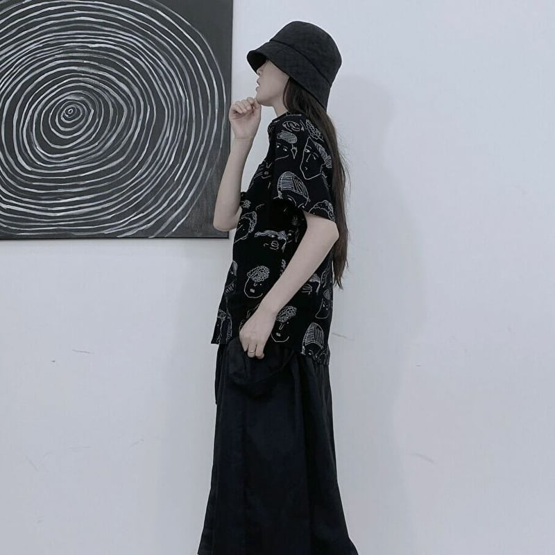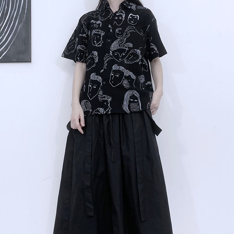 フェイス柄の半袖黒シャツとスカートのツーピースです。