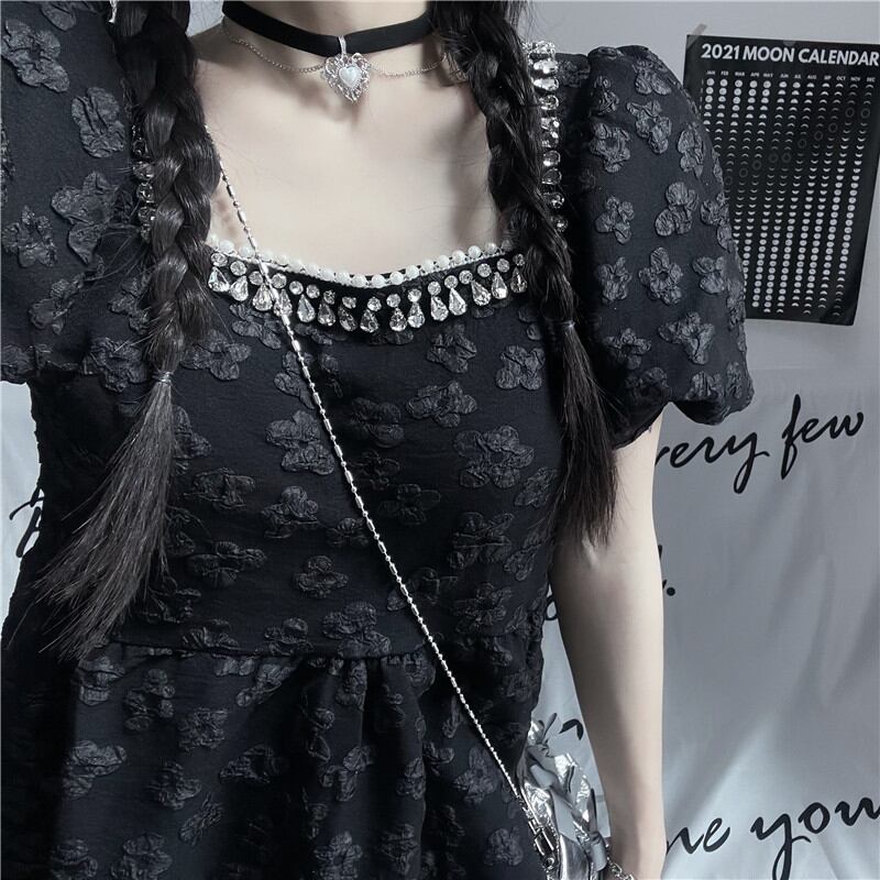 サブカル 服 地雷系 通販 ゴスロリ ワンピ レトロ デコルテ きれいめ パフスリーブ 黒ゴス 闇かわいい ゴシック ロリータ