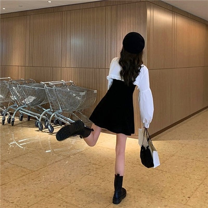 サブカル 服 地雷系 通販 ゴスロリ ツーピース ブラウス ジャンパースカート バルーンスリーブ 甘め JKスタイル 闇かわいい ゴシック ロリータ