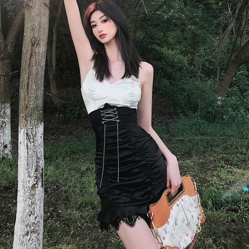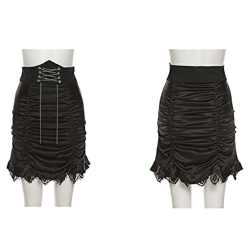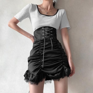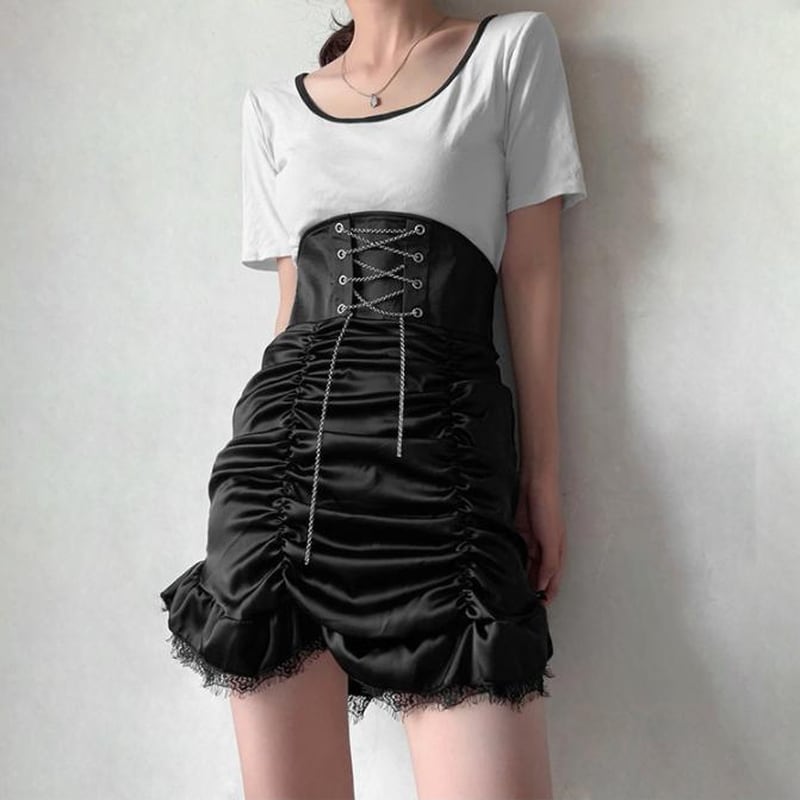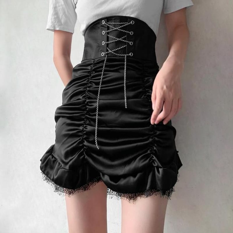サブカル 服 地雷系 通販 ゴスロリ ハイウエスト ミニスカ クロス編み上げ ギャザー タイトスカート 闇かわいい ゴシック ロリータ