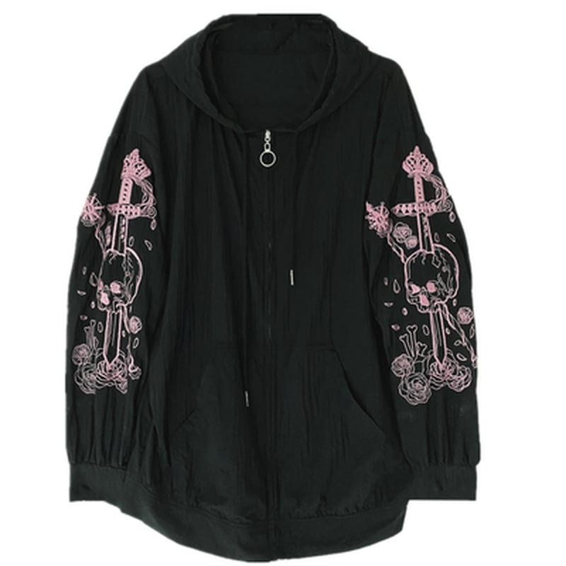 サブカル 服 地雷系 通販 ゴスロリ系 黒 パーカー ZIPアップ スカル 刺繍 闇 ゴシック ストリート系闇かわいい ゴシック ロリータ