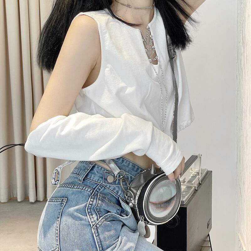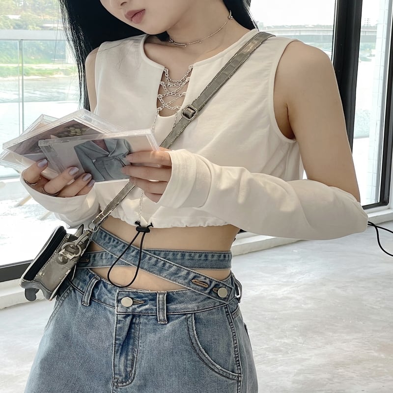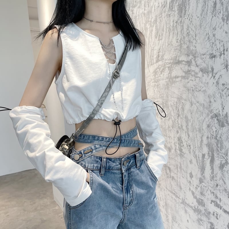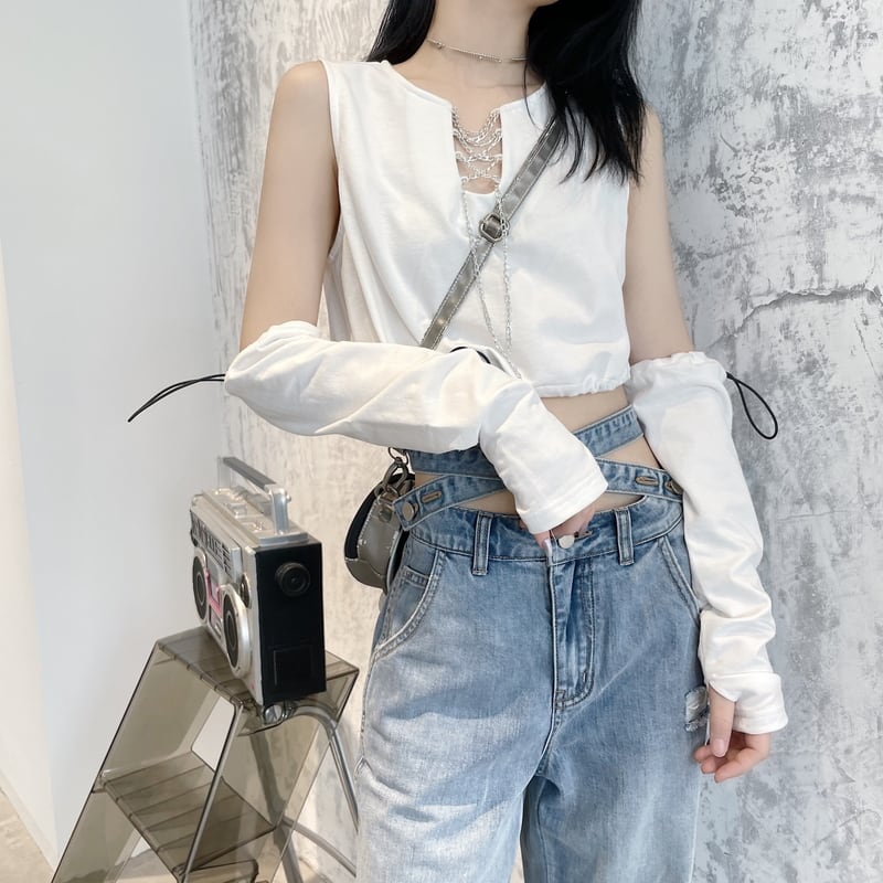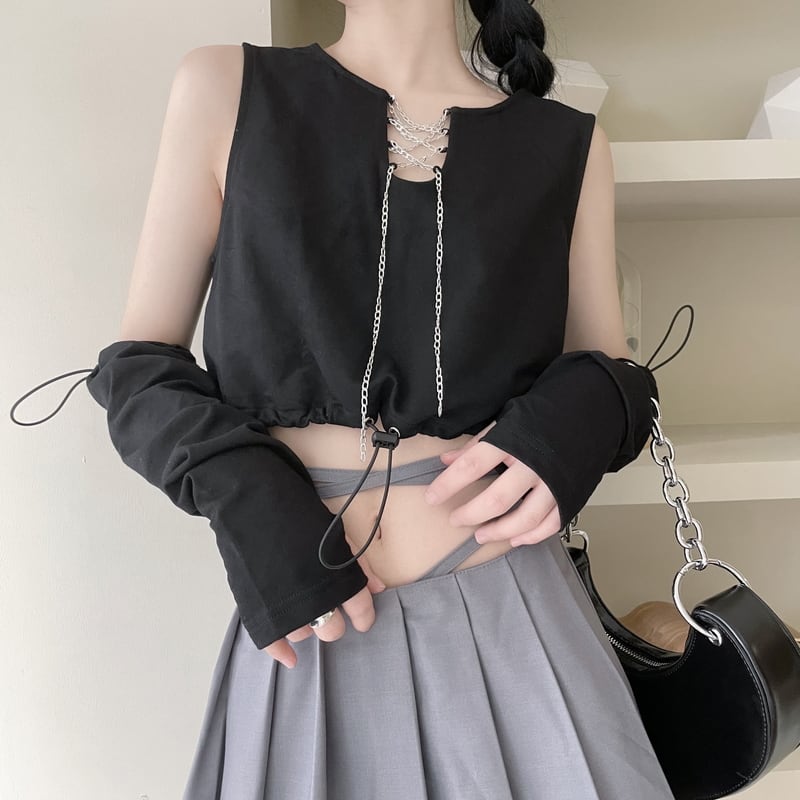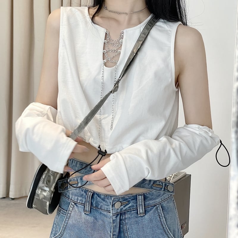 即納 ライブ 参戦服 ノースリーブ 編み上げチェーン アームカバー付き CRAZYGIRLシリーズ