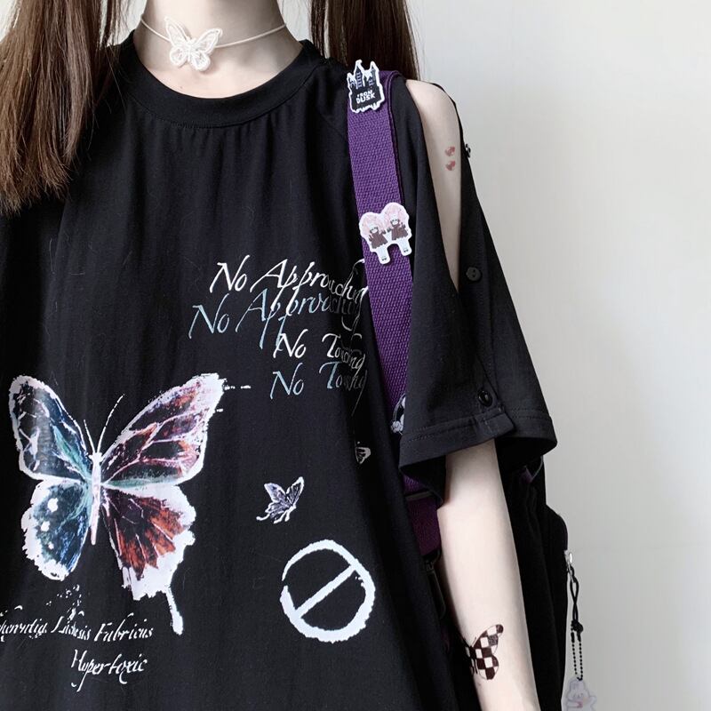 サブカル 服 地雷系 通販 闇かわいい Tシャツ オフショル JKスタイル butterfly 量産型