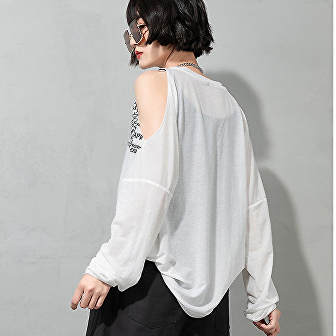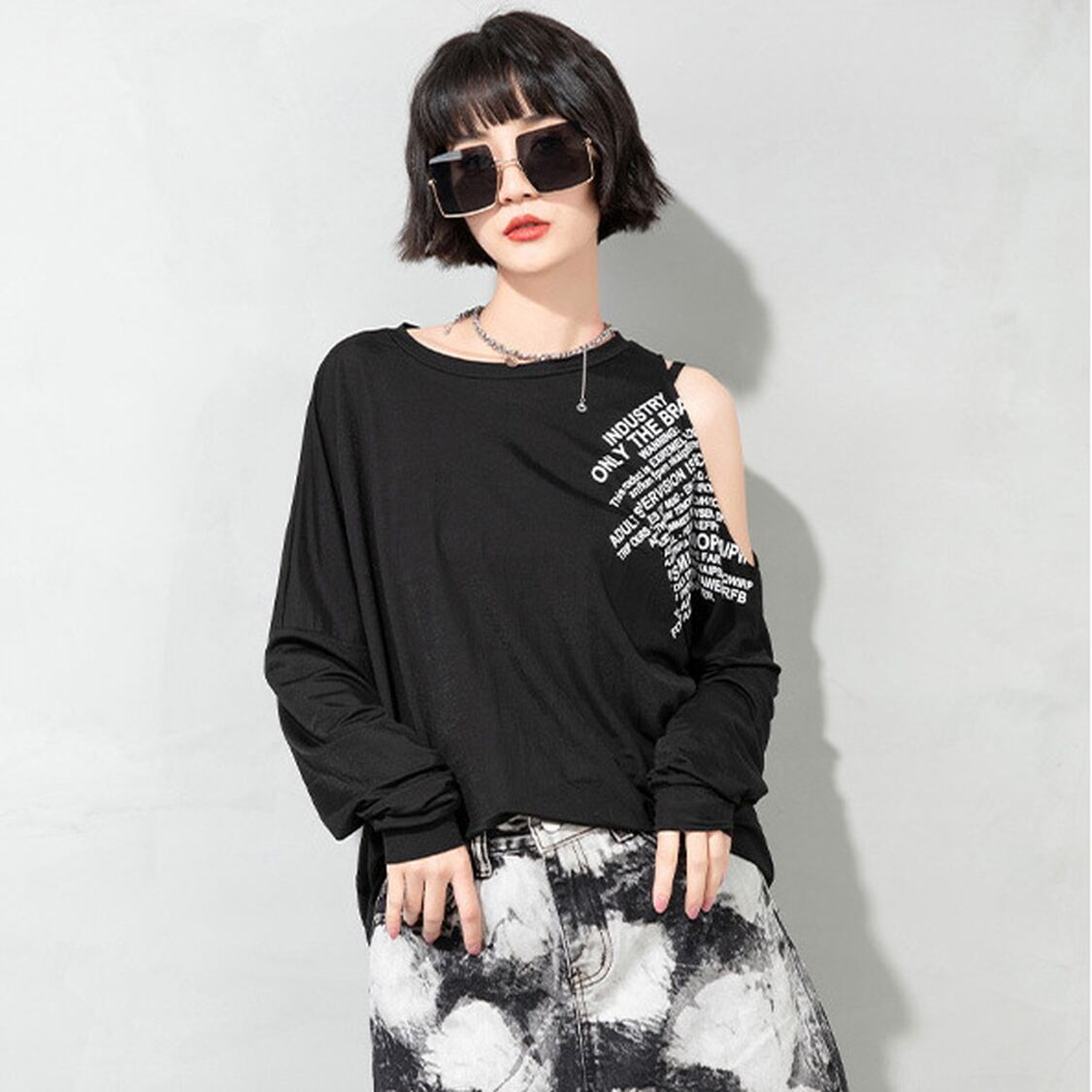 サブカル 服 地雷系 通販 長袖 Tシャツ ワンショル 肩出し 薄手着 モード系 大人きれいめ 大人増し 韓国系