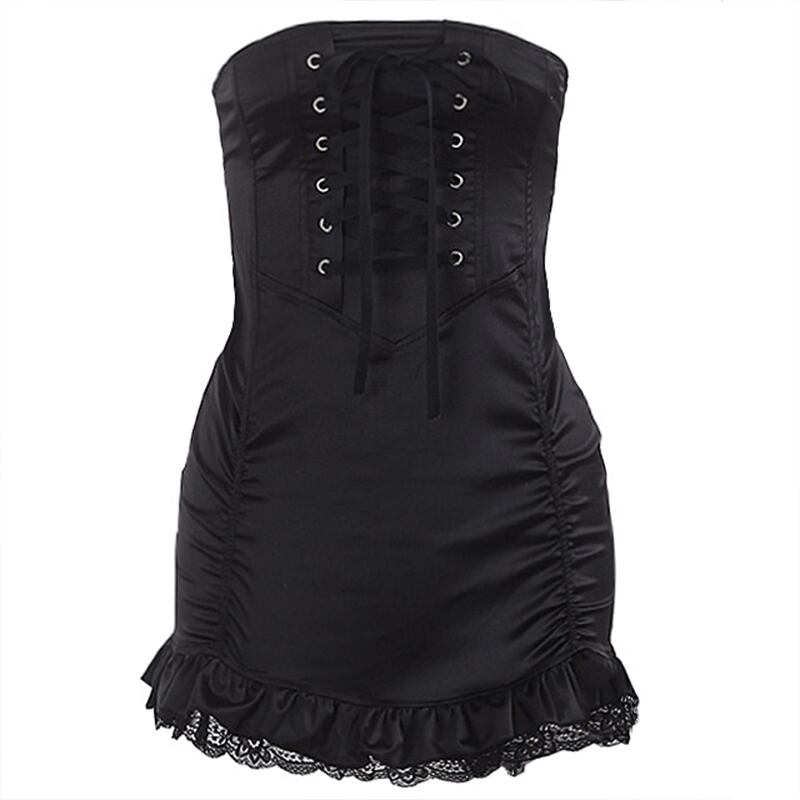 サブカル 服 地雷系 通販 タイトスカート ハイウエスト クロス編上げ ギャザー ゴスロリ 闇かわいい ギャル系 量産型 原宿女子 韓国系