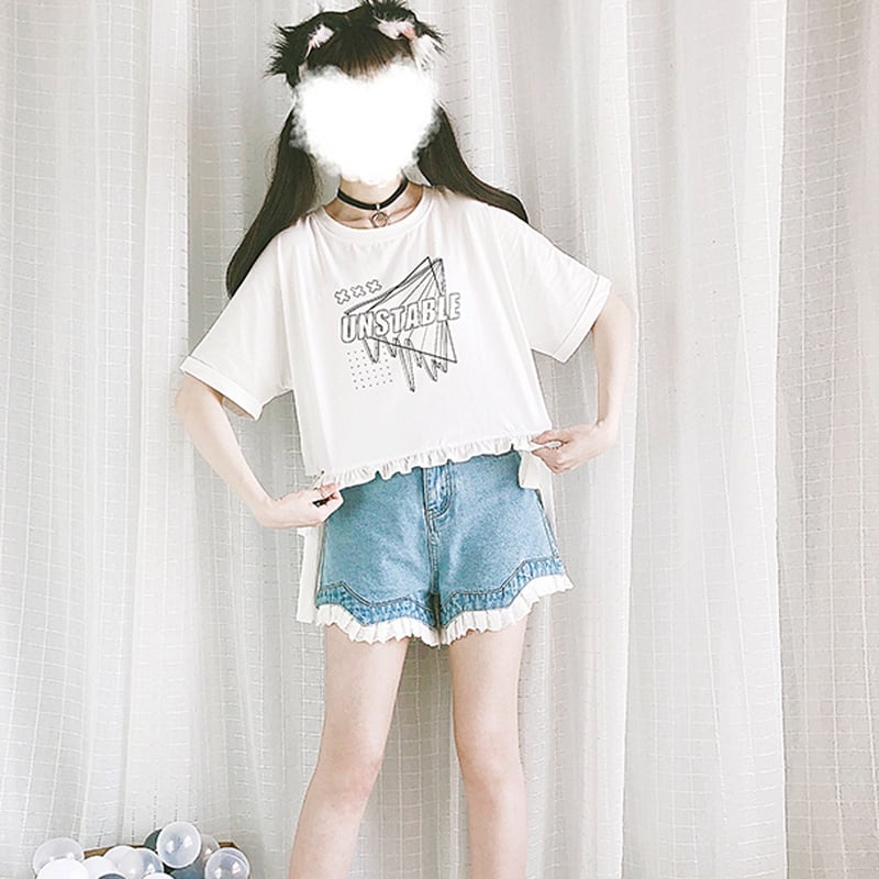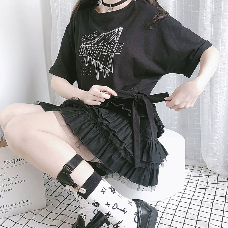 サブカル 服 地雷系 通販 Catwish ロリータ Tシャツ 半袖 サイドリボン 英字ロゴ JKスタイル 甘め かわいい 原宿女子 オルチャン